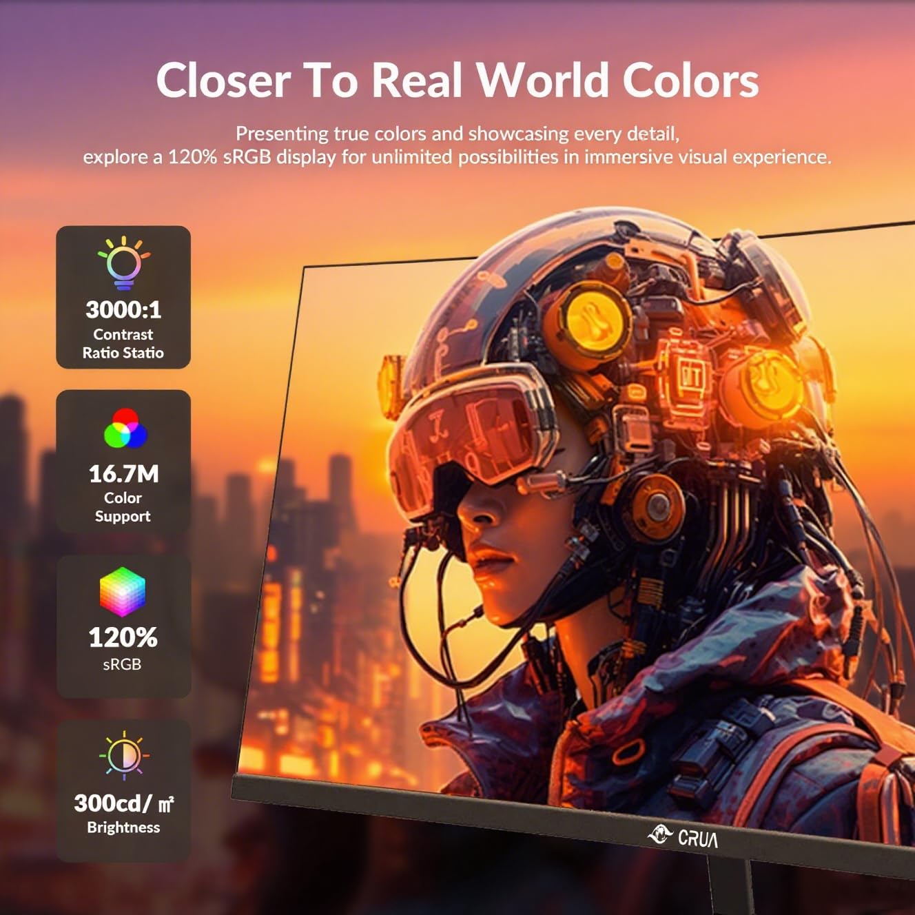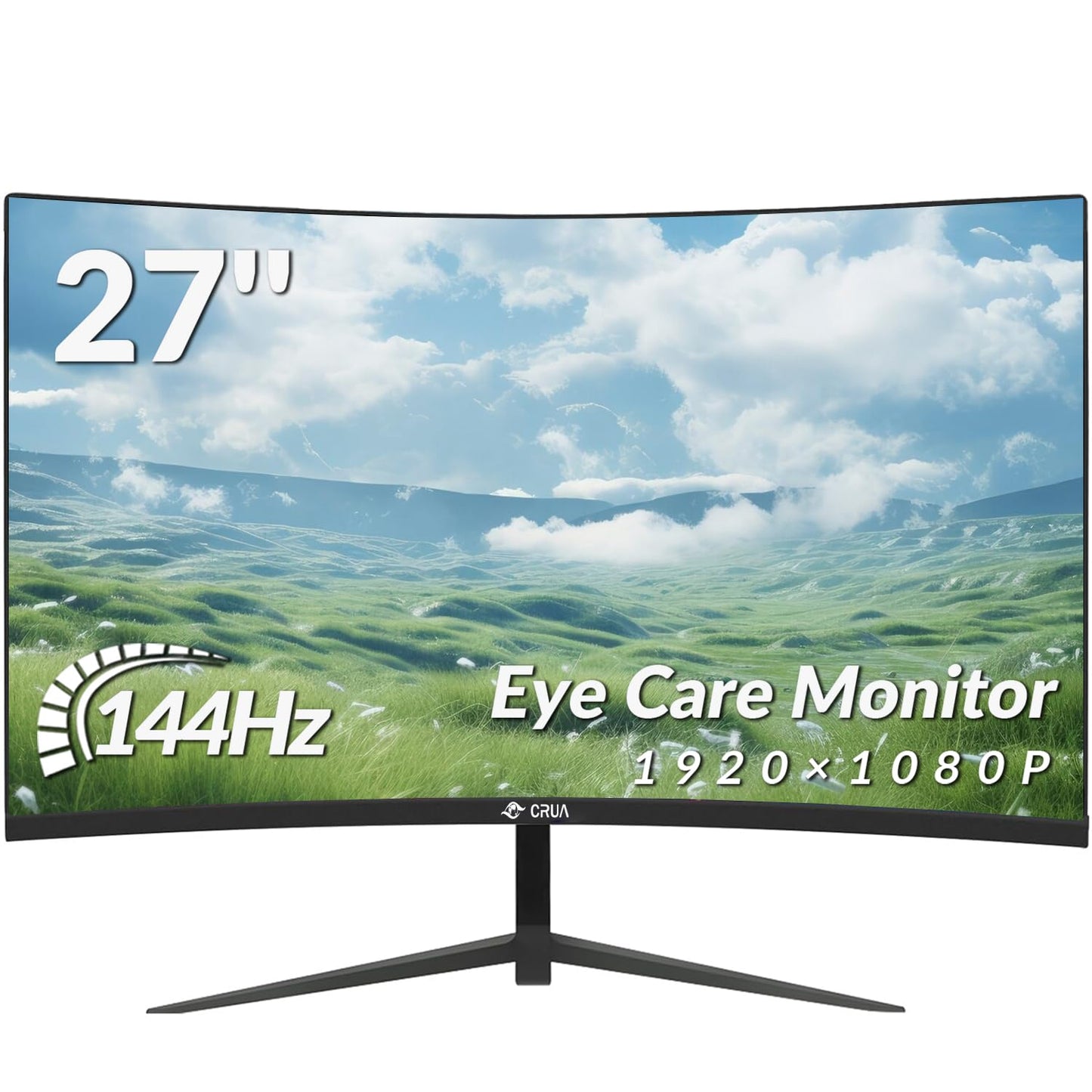 - 144Hz Rapid Refresh: Lightning-fast 144Hz refresh rate eliminates motion blur, stuttering, and ghosting. CRUA 27 inch computer monitor combined with rapid response time, it delivers unwavering visuals for exceptional gaming. Flicker-free technology and Low Blue Light protection reduce eye strain during extended use.