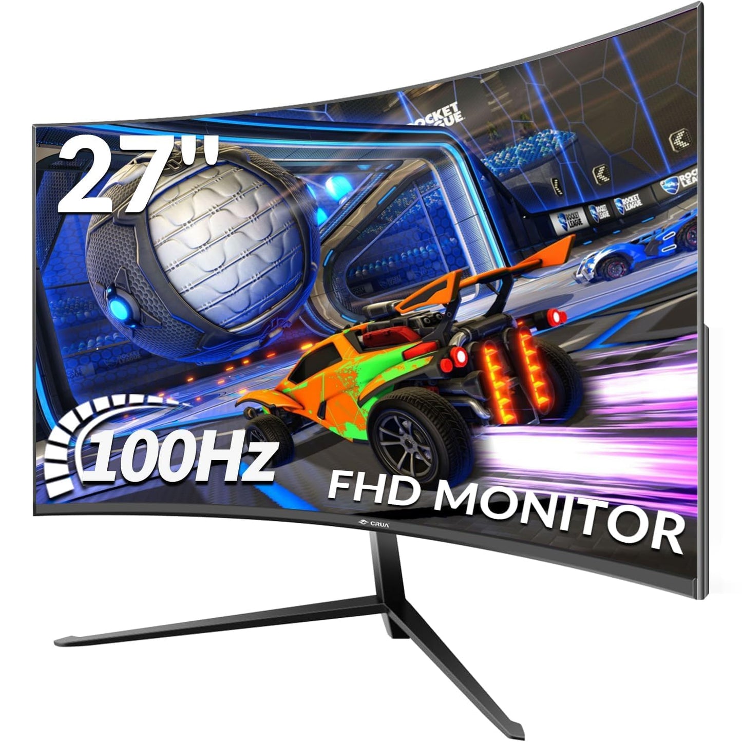 27 Inch Curved Monitor with 1920 * 1080P|100Hz/120Hz/144Hz Computer Monitor 27 inch with HDMI *1,VGA*1 and Tilt Adjustable,VESA Compatible Eye Care PC Office Monitor for Working and Gaming