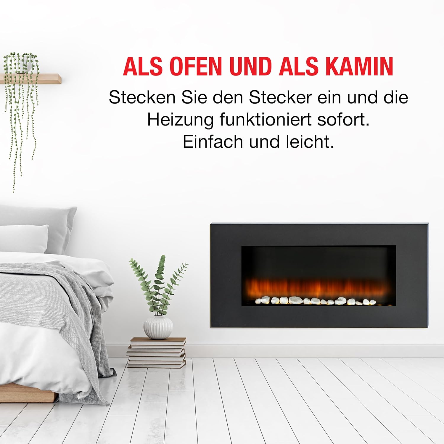 - Electric fireplace without chimney - No smoke extraction required, simply plug into the socket and enjoy immediately.