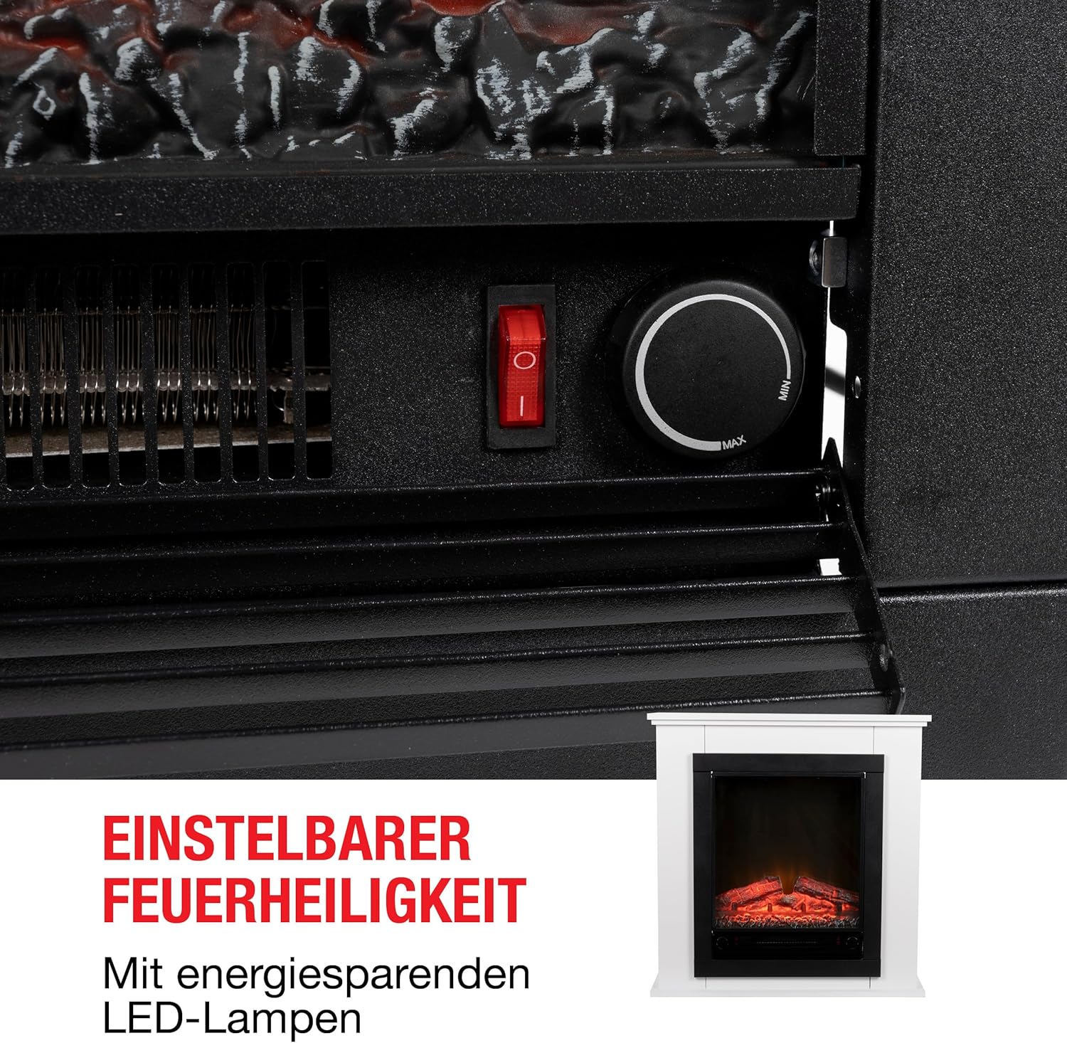 - Electric fireplace with adjustable temperature – you can adjust the temperature of the decorative fireplace via the control panel according to your wishes, up to a maximum temperature of 50 degrees Celsius