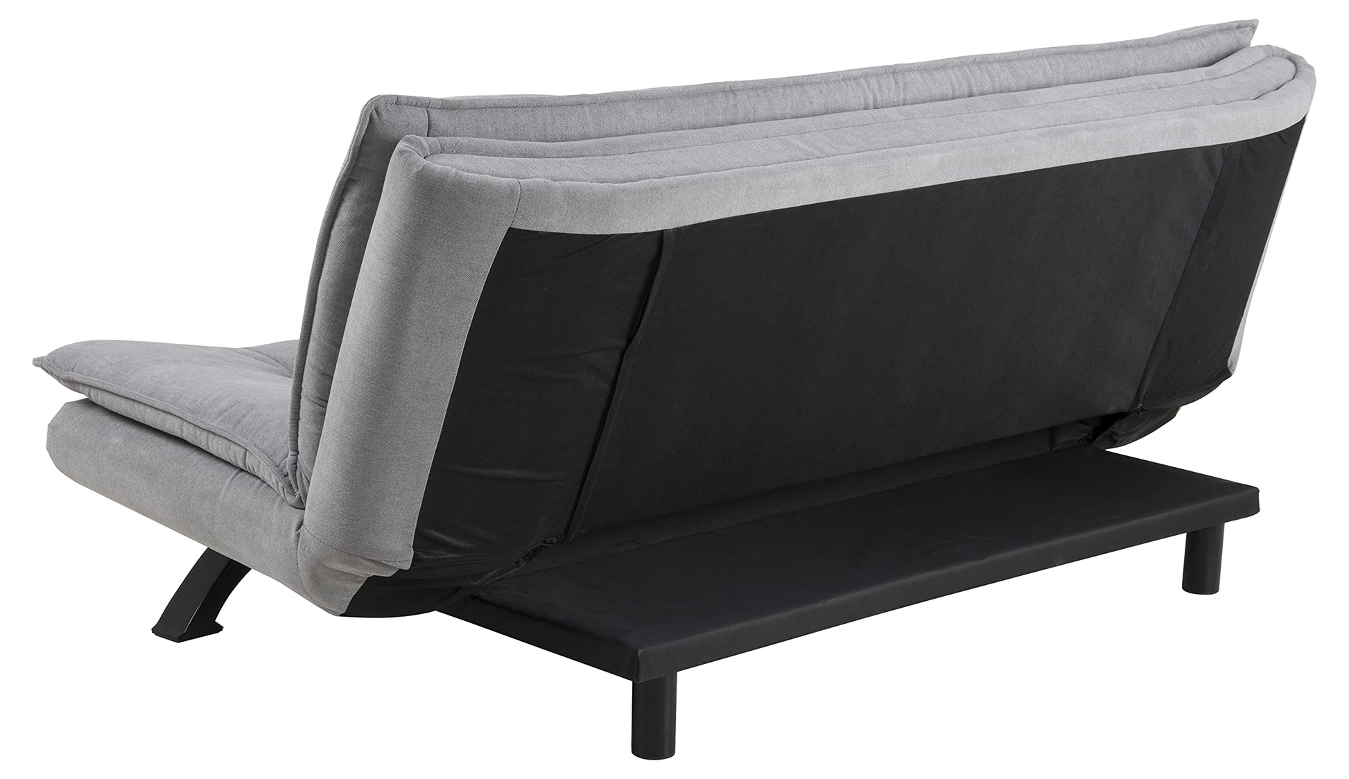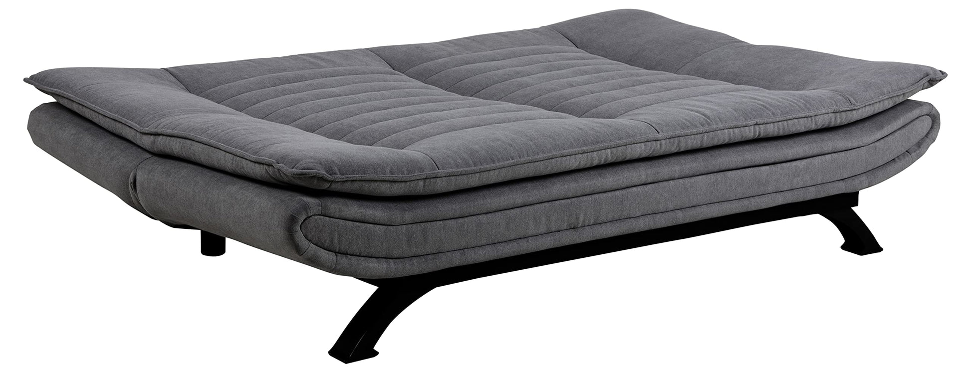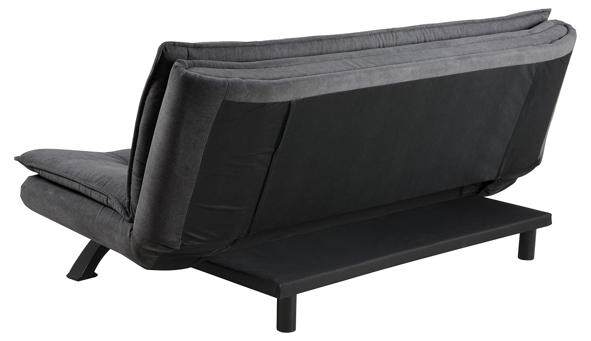 - Seine weiche und bequeme Polsterung besteht aus elegantem dunkelgrauem Flachgewebe, das mit schwarzen Metallbeinen kombiniert wird, die dem modernen Futon einen edlen Look verleihen