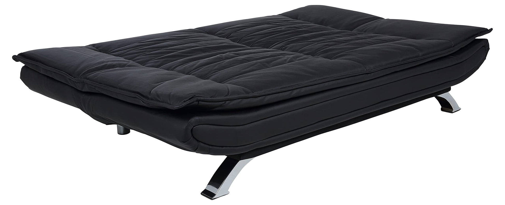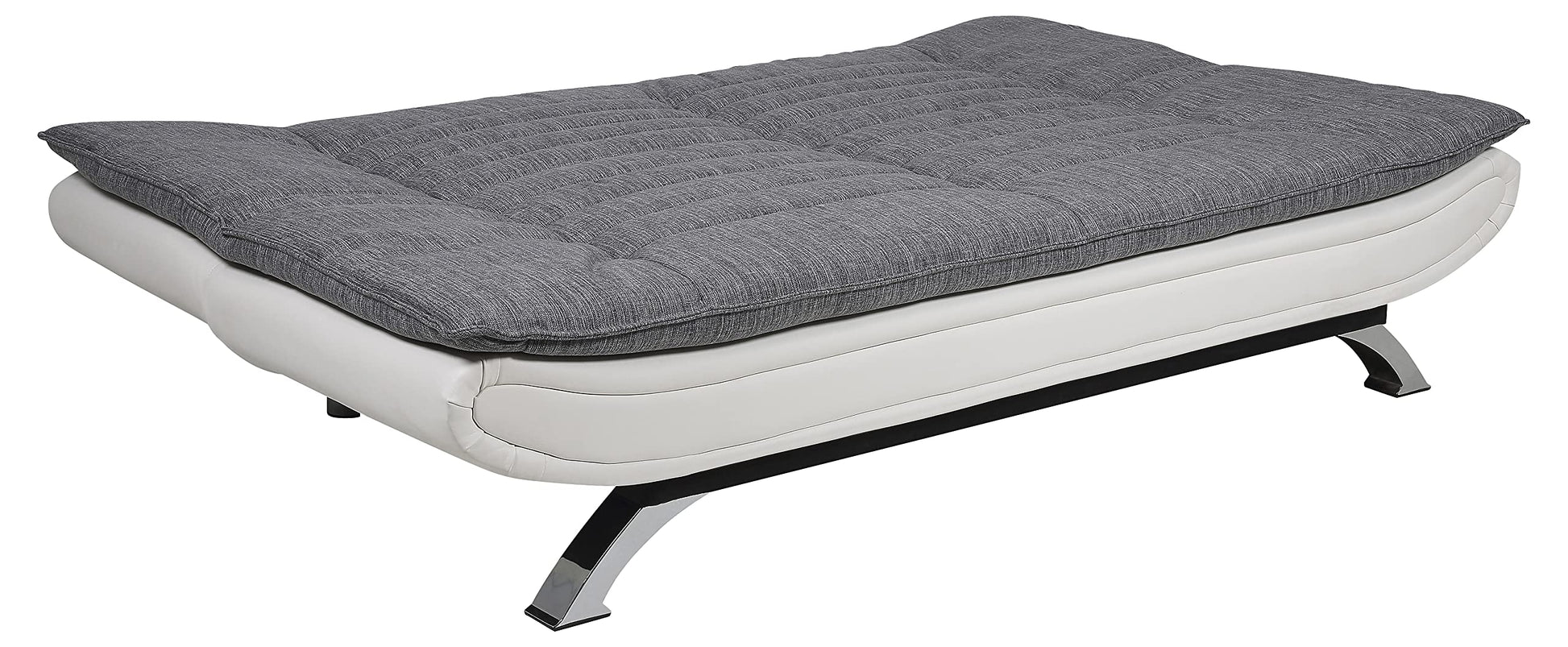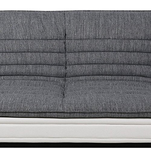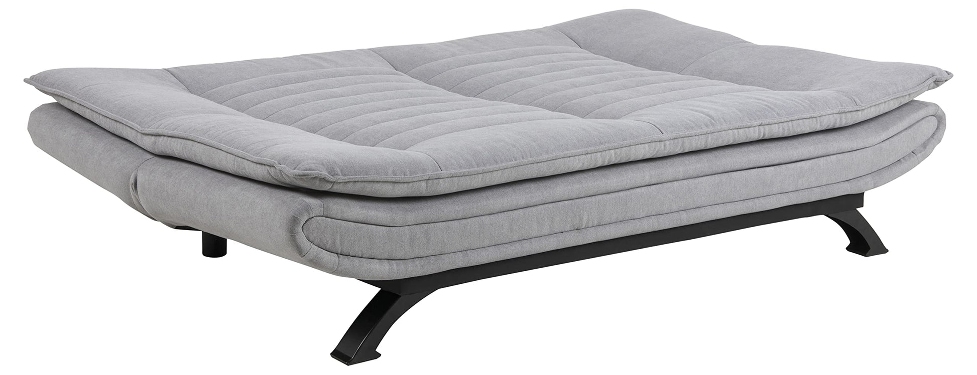 - Seine weiche und bequeme Polsterung besteht aus elegantem dunkelgrauem Flachgewebe, das mit schwarzen Metallbeinen kombiniert wird, die dem modernen Futon einen edlen Look verleihen