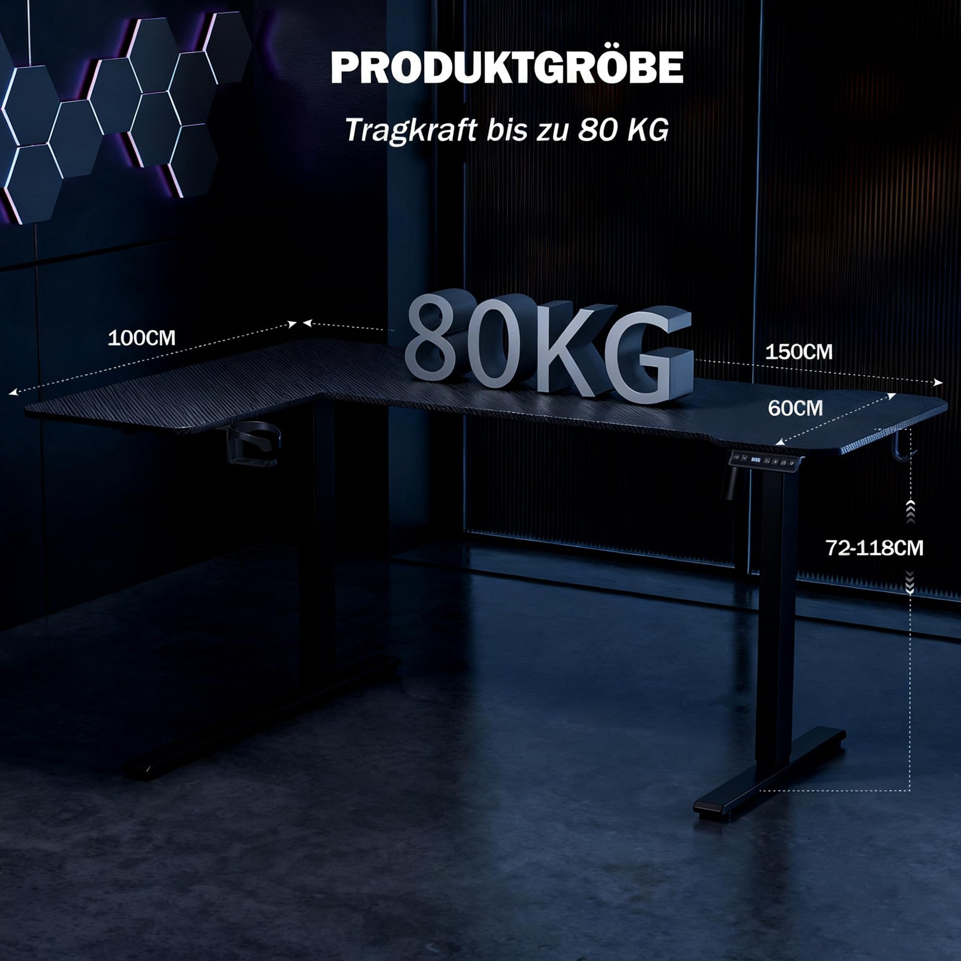 Acrolix Height-Adjustable Desk L Shape, 150 x 100 cm, Electric Corner Desk, Height Adjustable 72-118 cm, with Drink Holders and Hooks, Sturdy Scaffolding Corner Desk, Brown