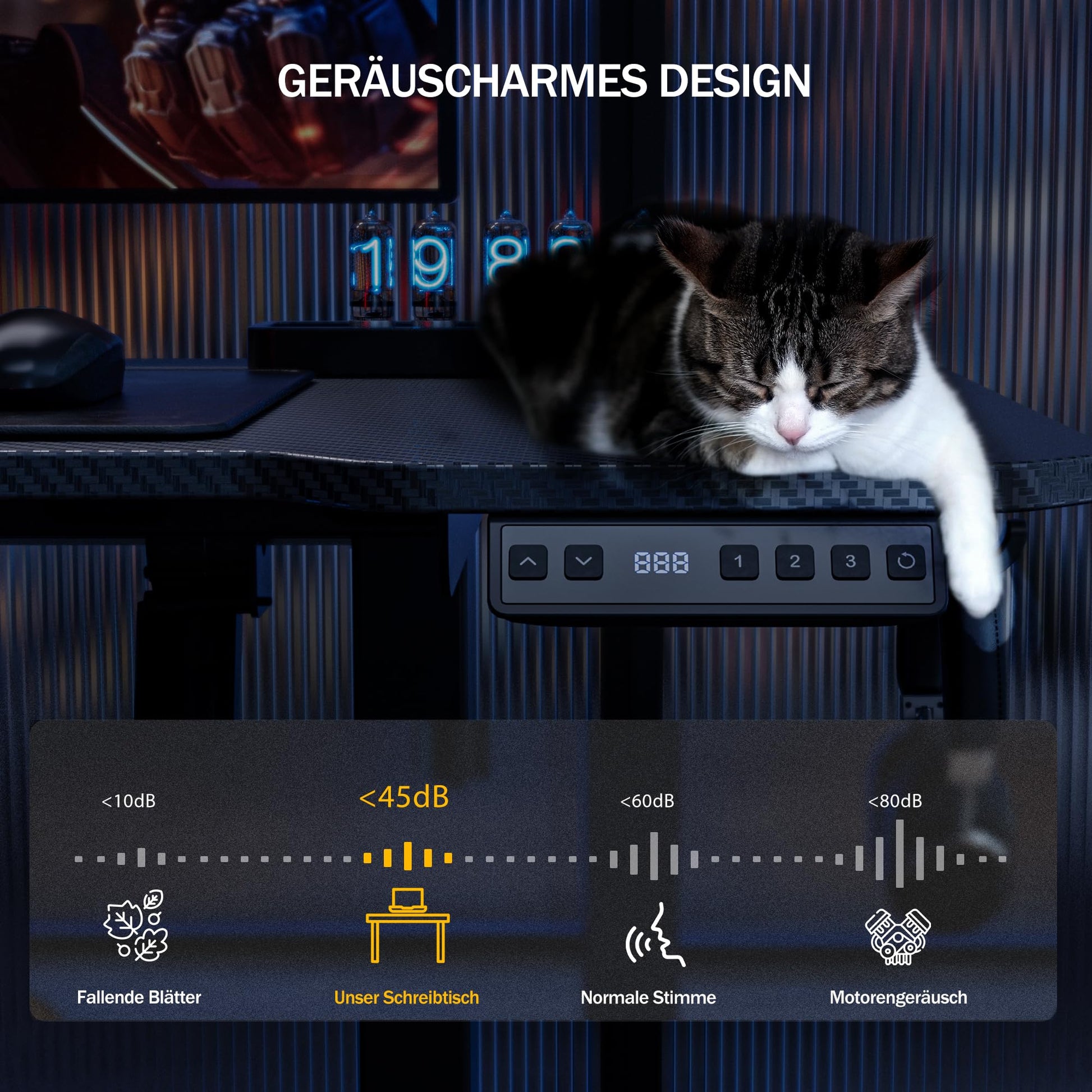 - Quiet adjustment system: This desk is equipped with a smooth electromechanical lifting system to ensure a quick and smooth adjustment process. At the same time, the height adjustment system is quiet and the noise is less than 45 dB, which does not affect your daily life.