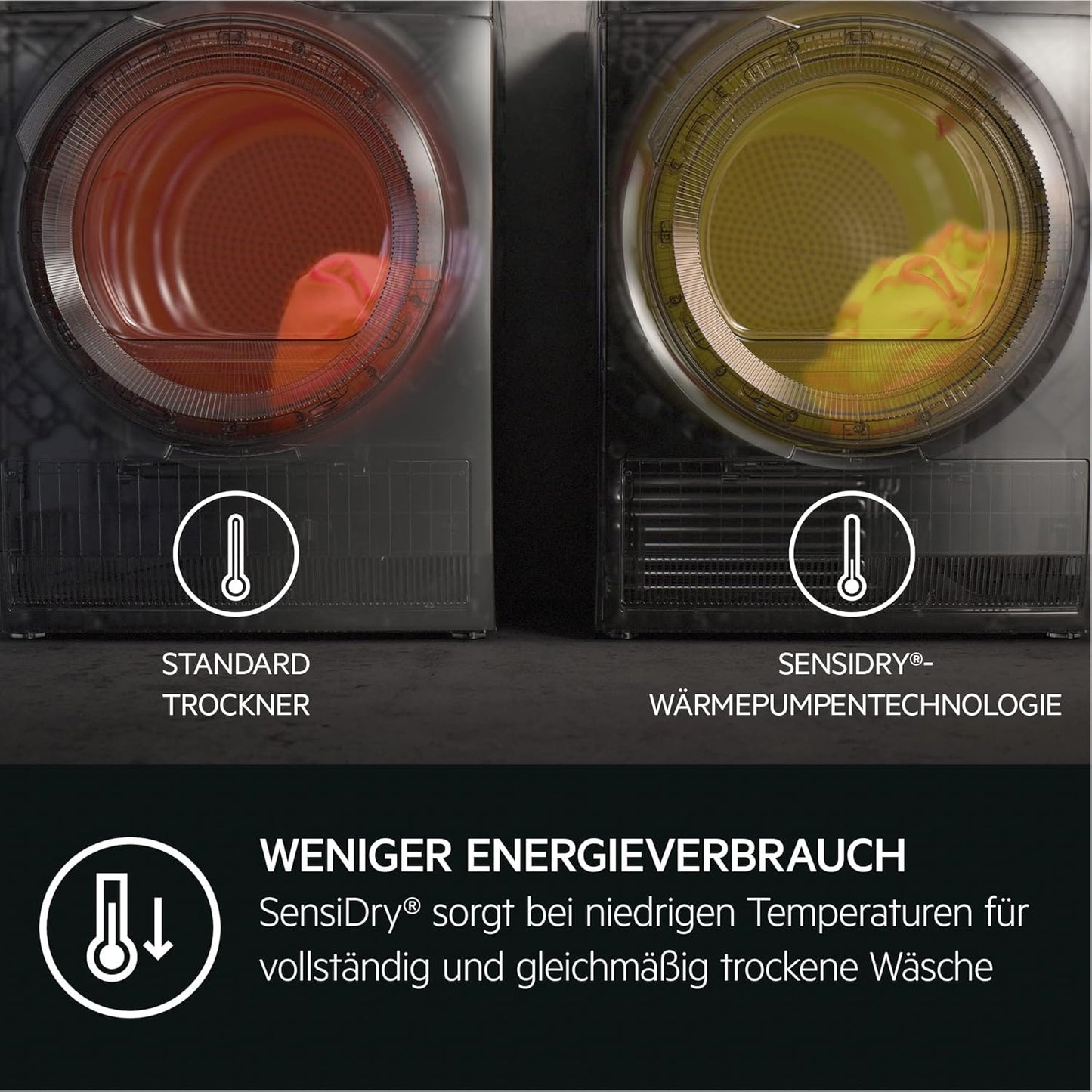 AEG Wärmepumpentrockner Serie 9000 mit AbsoluteCare Plus, Daunentrocknung – Punktgenaue Trockenergebnisse mit 3D-Scan, Testsieger der Stiftung Warentest, 8 kg, A+++, Schontrommel, TR9AMZ2024