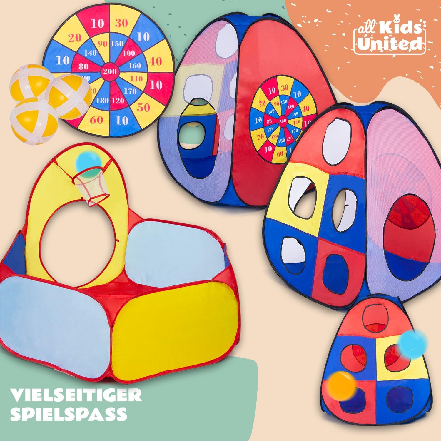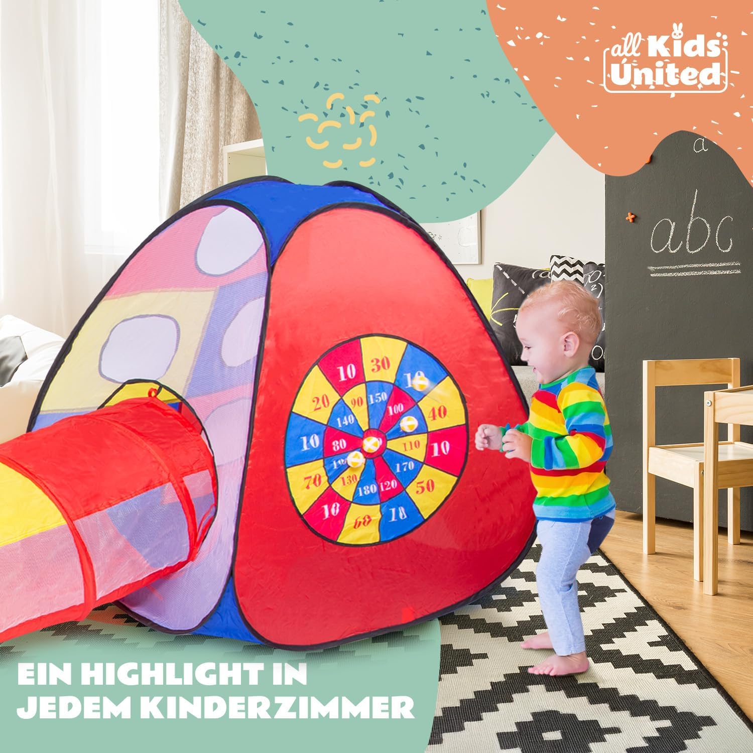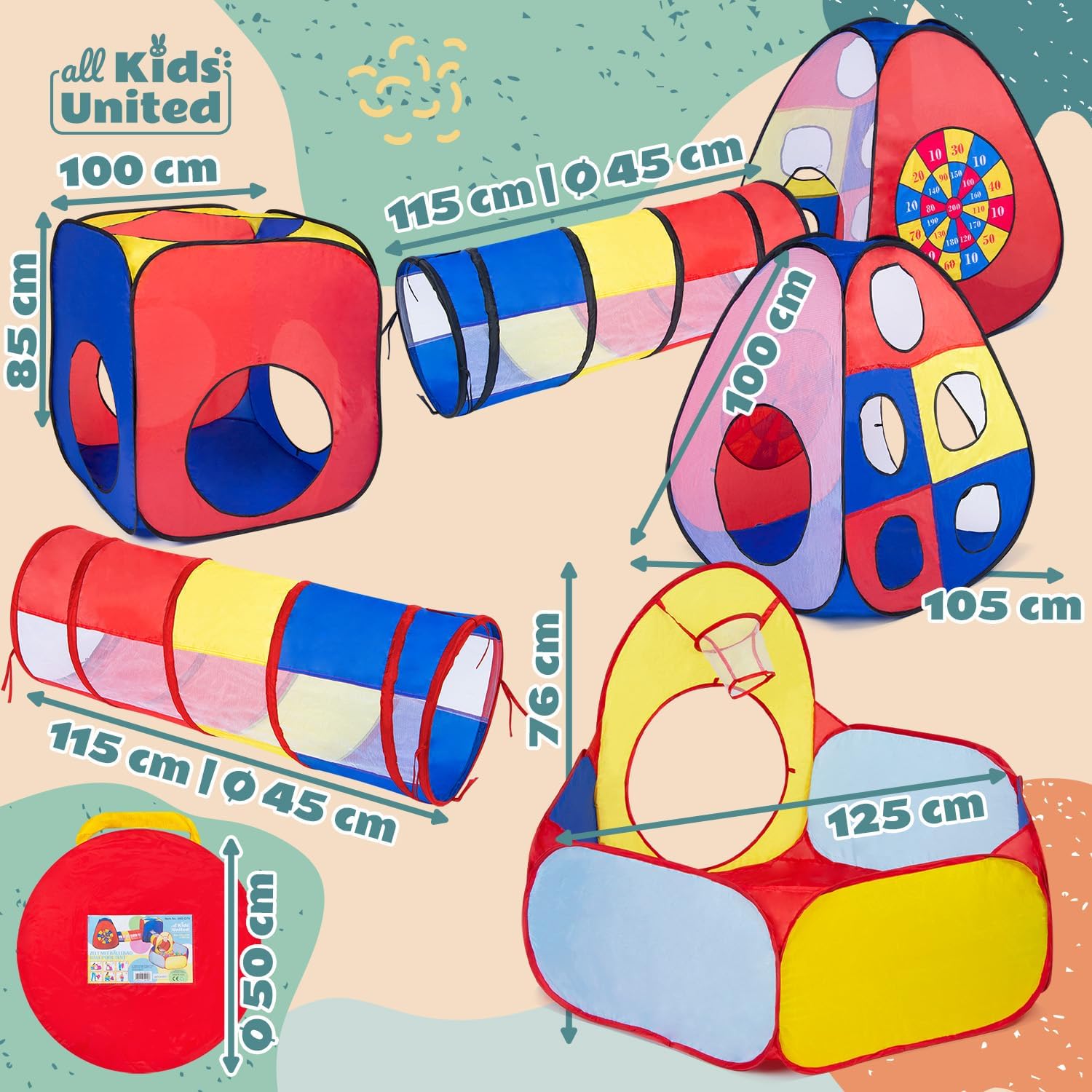 all Kids United® Play Tent with Tunnel, Ball Pit, Crawling Tunnel & More (without Balls) XXL Play Land 5-Piece Pop-Up Play House with Bag