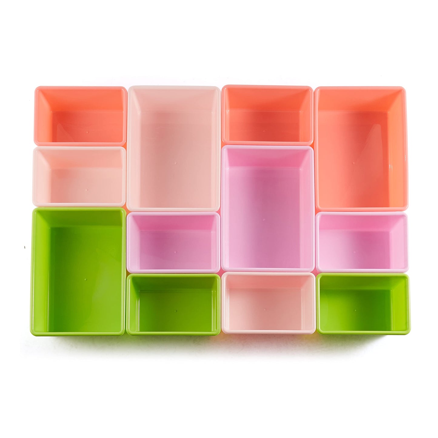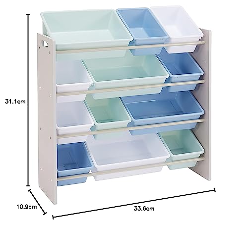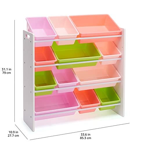 Amazon Basics Kids Toy Storage Toy Organiser with 12 Plastic Containers, White Wood with Pink Containers, 27.7 x 85.3 x 79 cm
