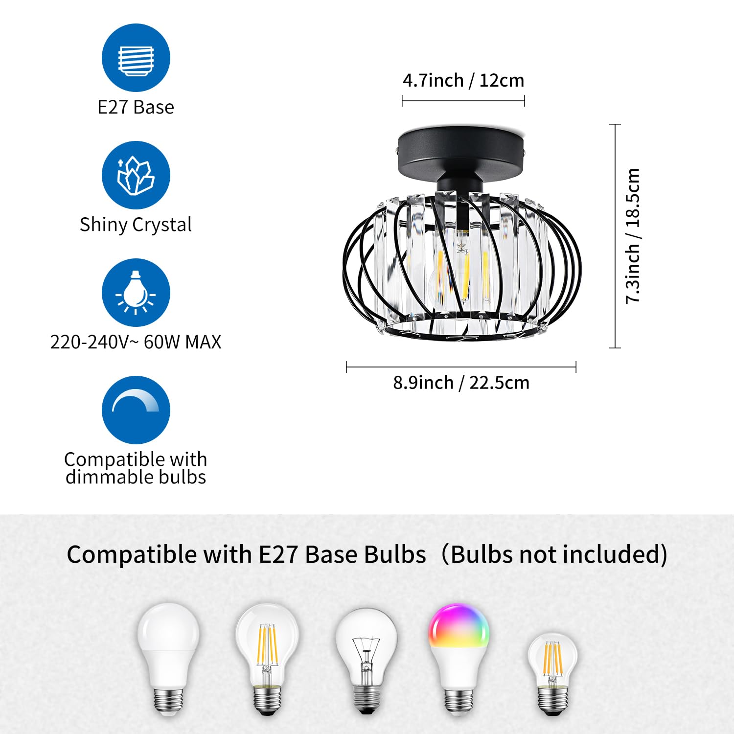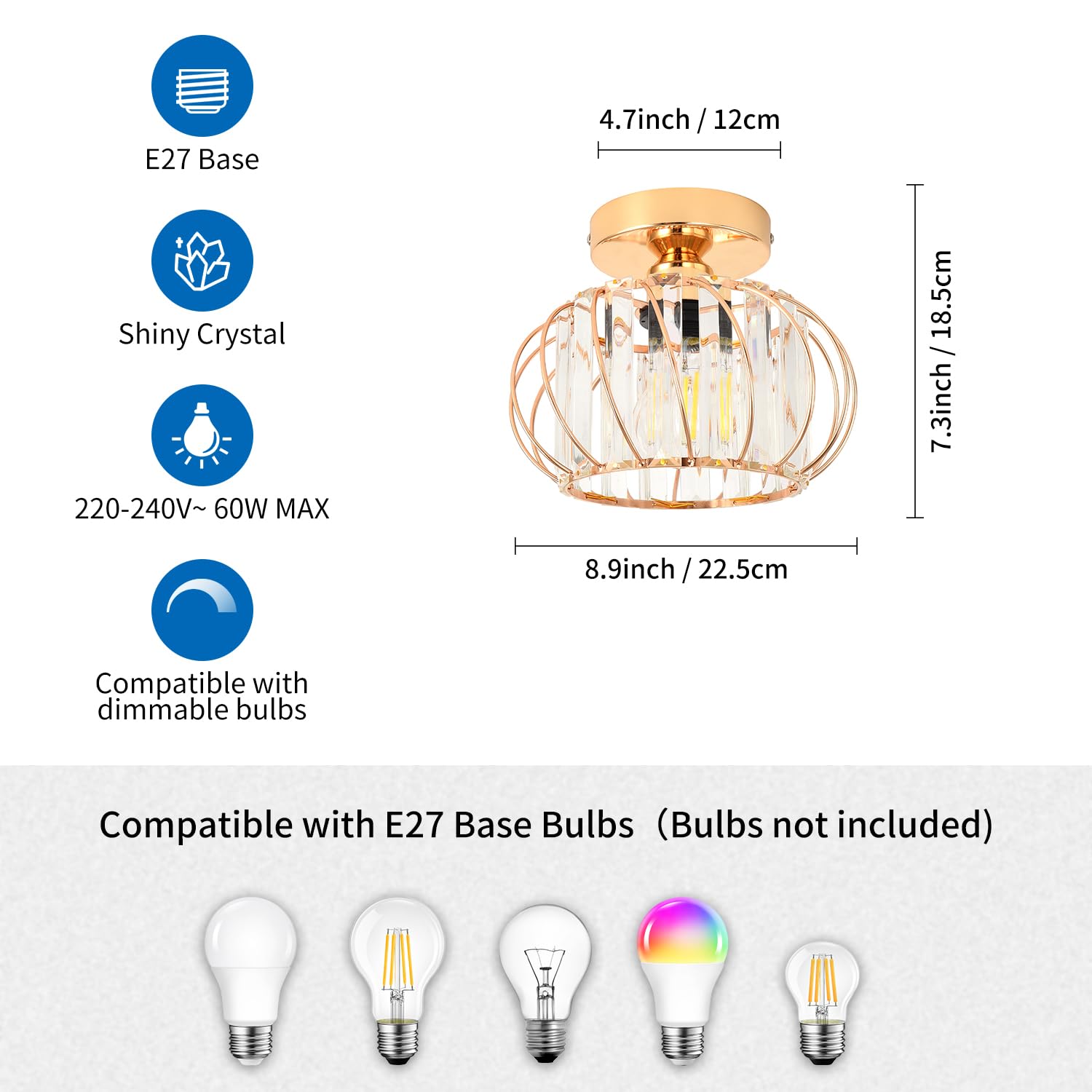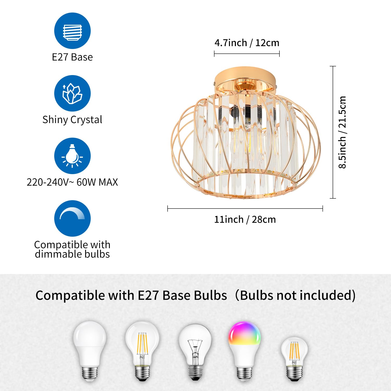 • 【 Dimmbare Kristall Deckenleuchte】: Dimmbare Funktion ist verfügbar, wenn sie mit der Glühlampe kompatiblen Dimmschalter montiert wird. Wenn E27 Smarte Lampe installiert sind, können diese über Smart Life oder Tuya Smart APP farblich angepasst werden.