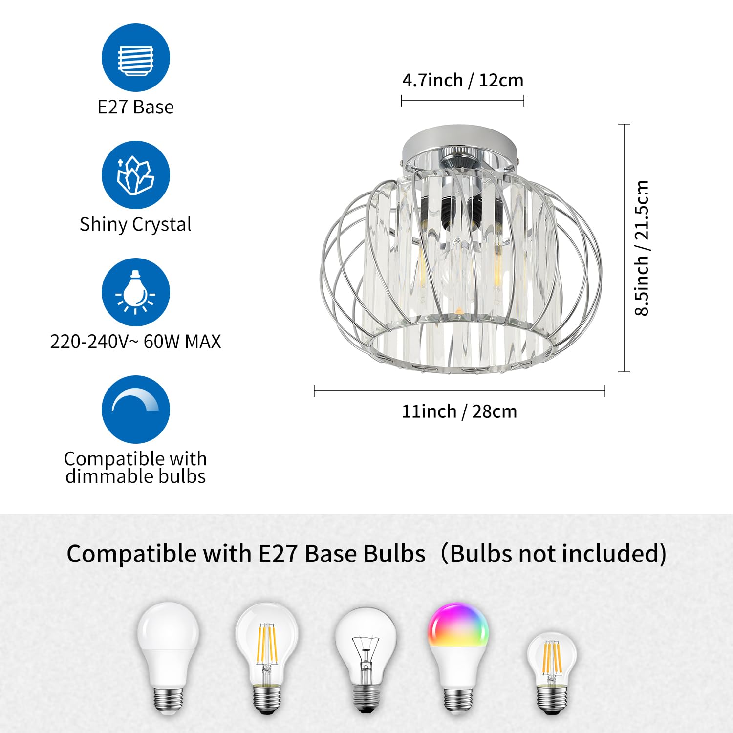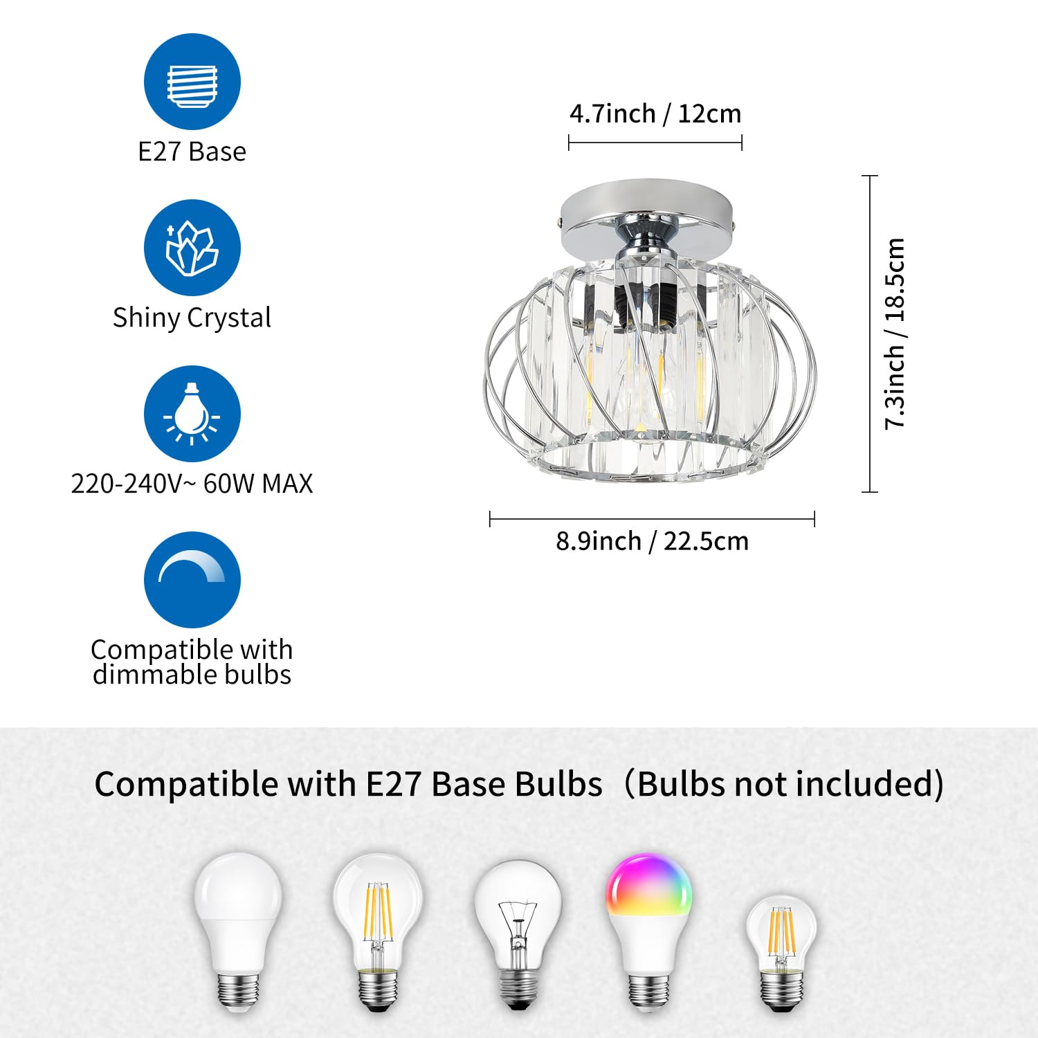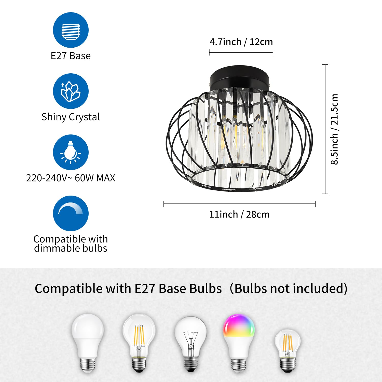 • 【 Dimmbare Kristall Deckenleuchte】: Dimmbare Funktion ist verfügbar, wenn sie mit der Glühlampe kompatiblen Dimmschalter montiert wird. Wenn E27 Smarte Lampe installiert sind, können diese über Smart Life oder Tuya Smart APP farblich angepasst werden.