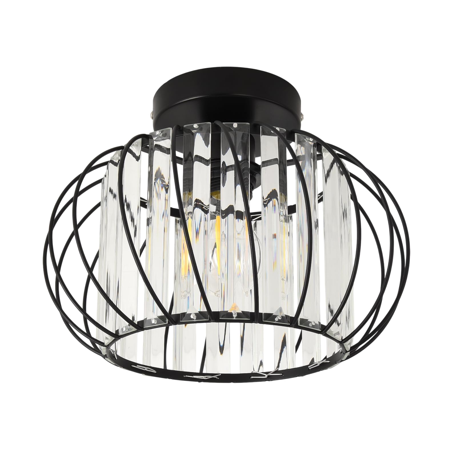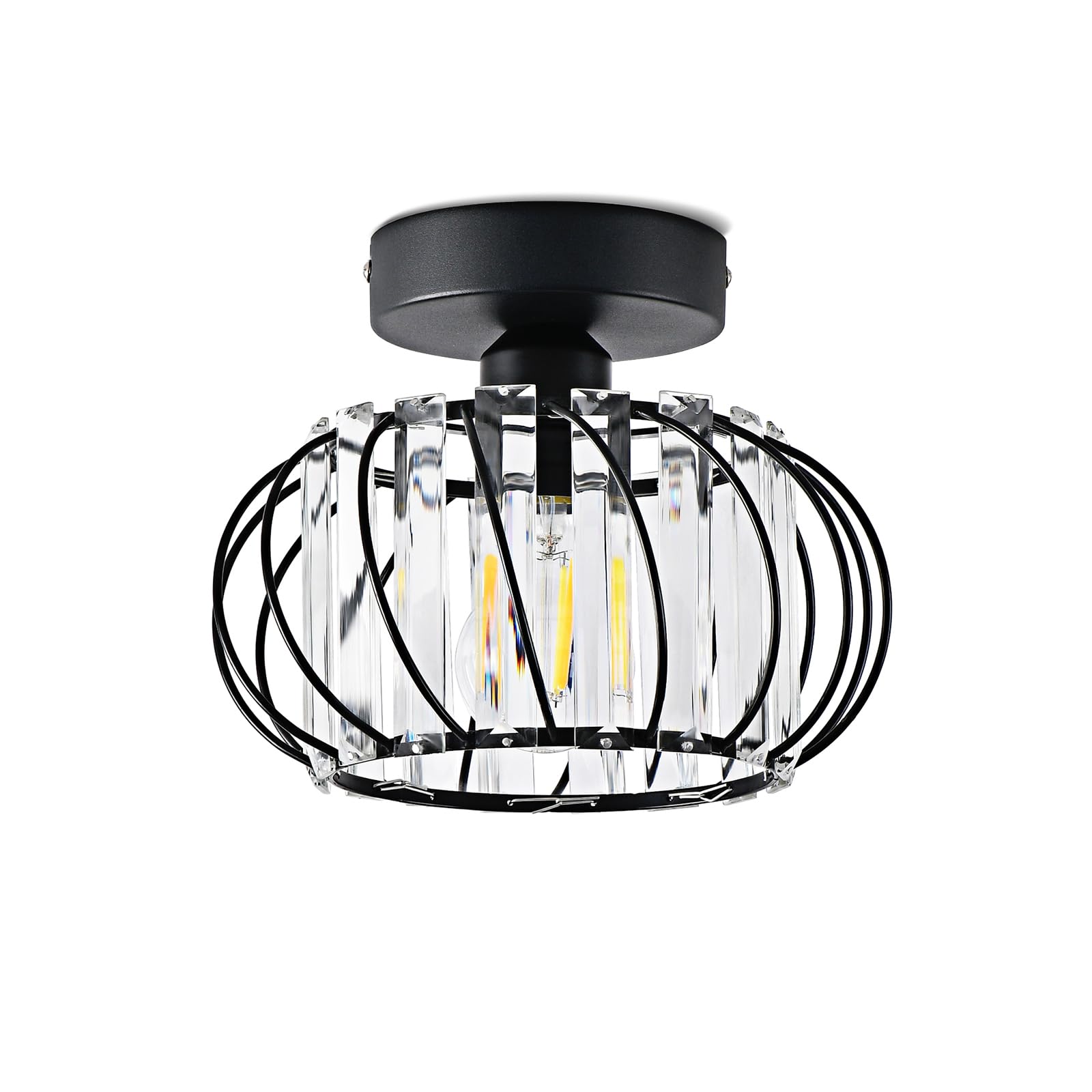 ANWIO Kristall Deckenleuchhte Kronleuchter, Wohnzimmer Lampe, Deckenleuchte E27 für Flur Balkon Küche Schlafzimmer Dekorative, Schwarz, Φ28CM