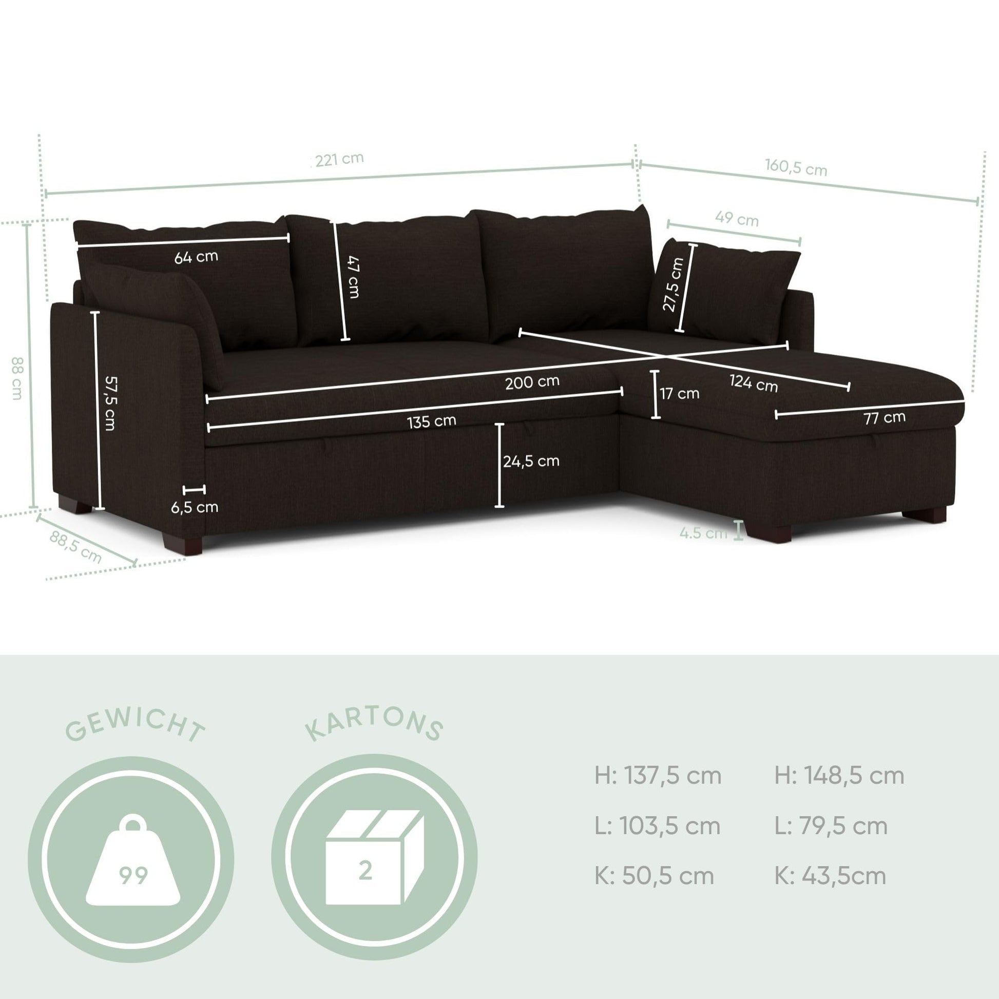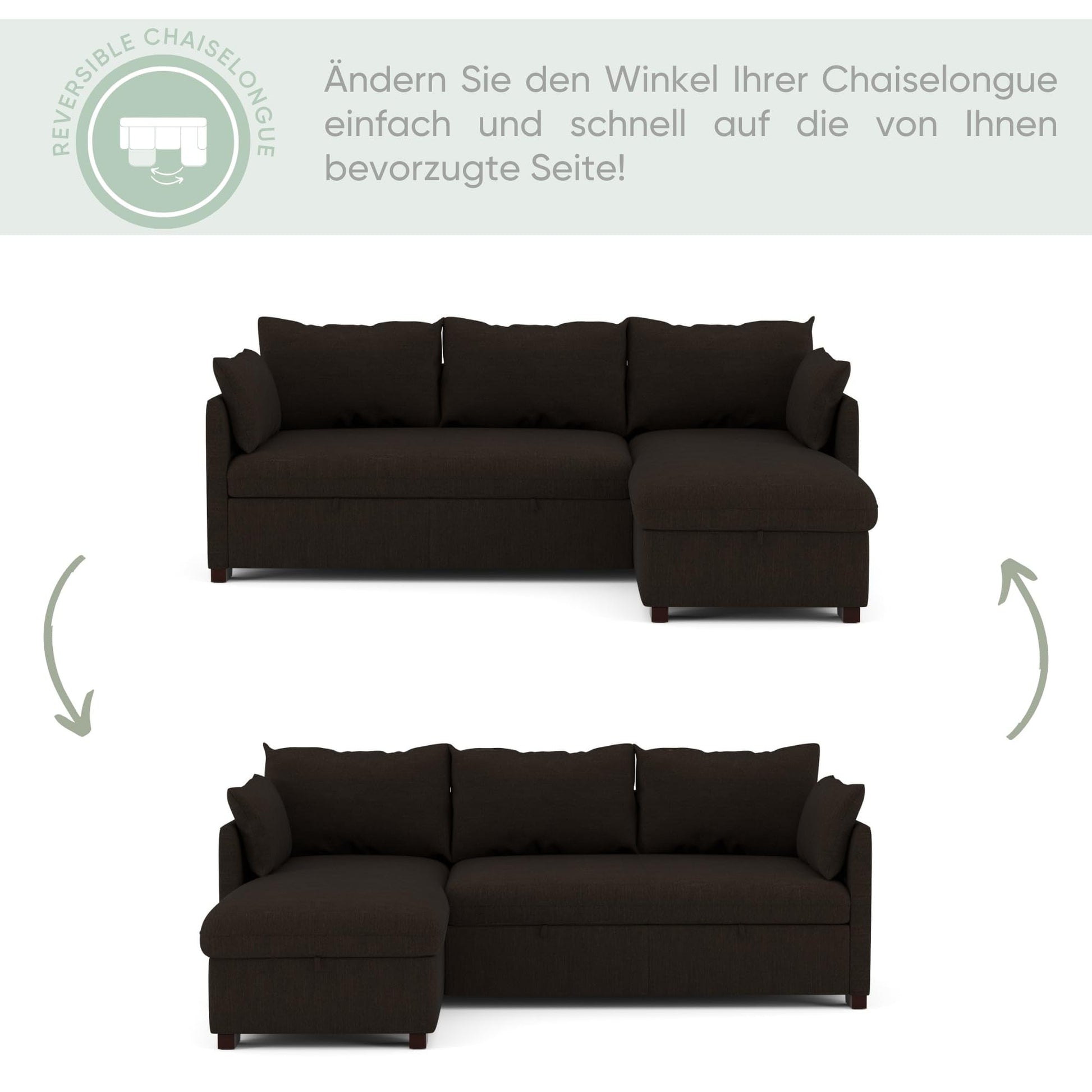 - ✅ With a modern design, Orlando is ideal as a chaise longue sofa, bed or as a chest. This 3-seater sofa bed will easily convert into a cozy double bed to receive friends and family. If you are looking for a chaise longue 3-seater corner sofa bed with chest, this is the one for you.