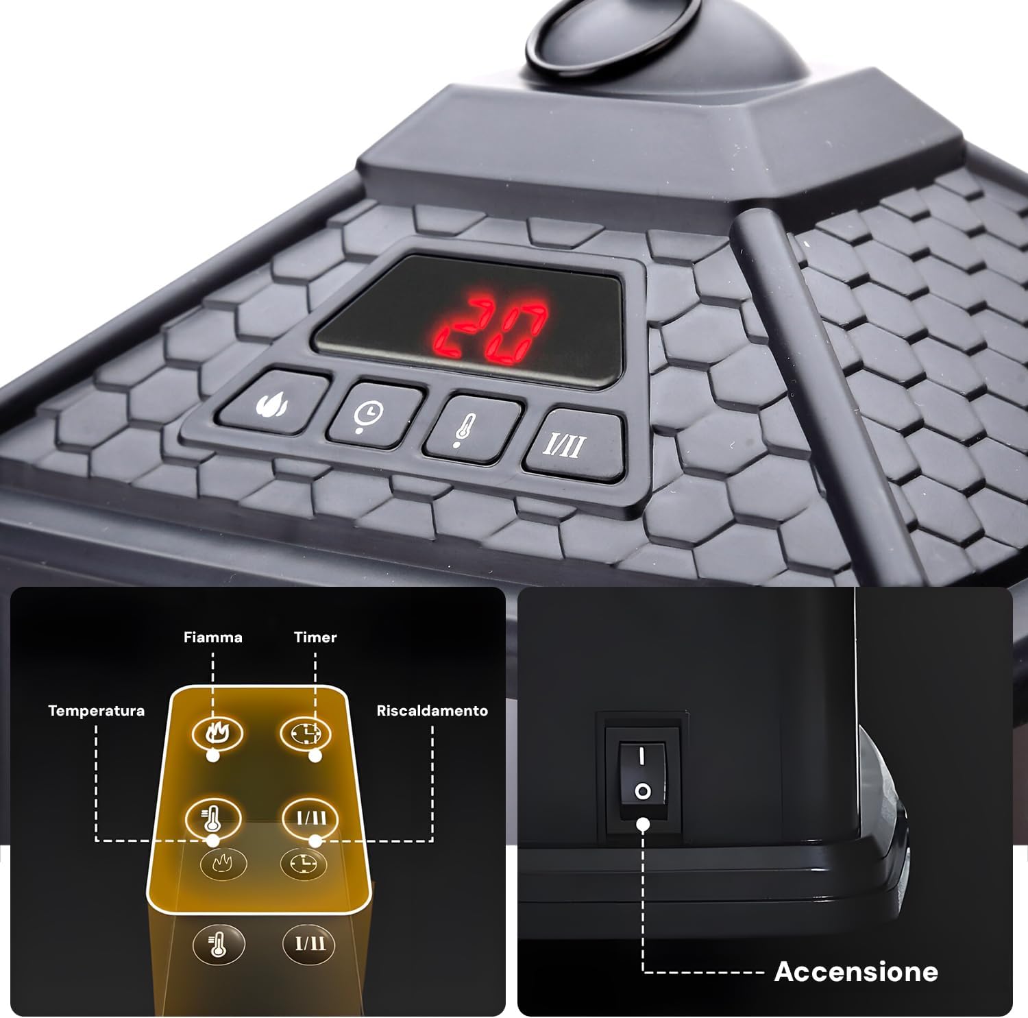 - Realistic 3D Fireplace Effect Transform your room with the charming electric fireplace stove, equipped with realistic and dancing flames, creating a cozy and relaxing atmosphere, perfect for relaxing moments or romantic evenings.