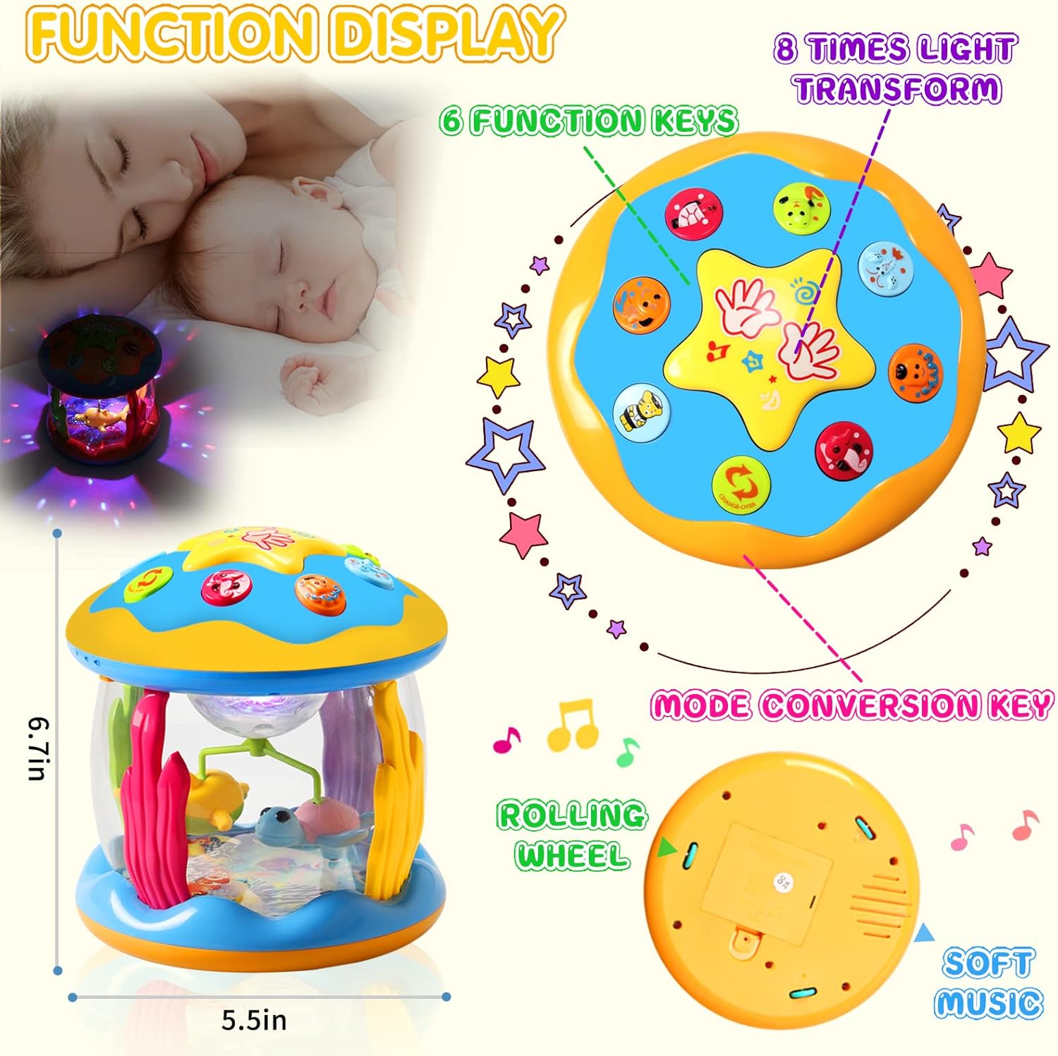 - Idea gift: The baby toy from 6 months is a perfect gift for a children's room or anywhere you want colourful projected stars, moon and sea creatures. Suitable toy for 6-12 months old toddlers and toys from 1 year