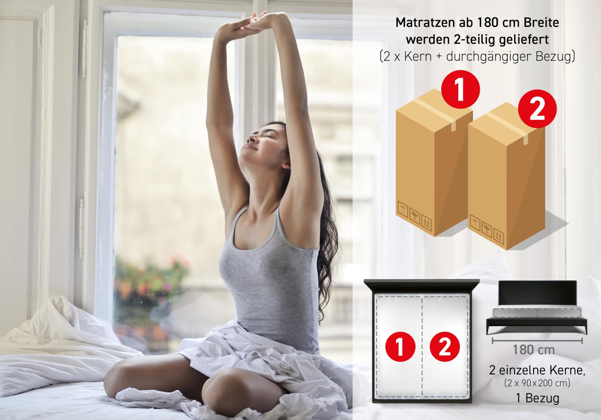 - DUOHÄRTEGRAD - vereint zwei Härtegrade: 3 (mittelfest) und 4 (fest), 7 ergonomische Liegezonen mit ausgeprägter Schulter- und Beckenzone sorgen für optimale Körperanpassung und erholsamen Schlaf, Gesamthöhe: ca. 22 cm