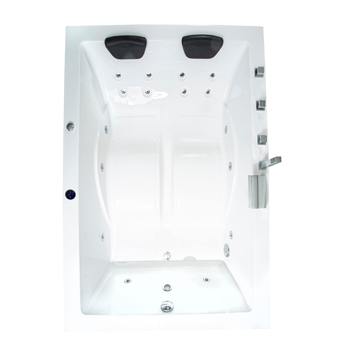 Basera® Basic Indoor Whirlpool Badewanne XXL Wave für 2 Personen mit 16 Massagedüsen, Wasserfall, LED-Ambiente