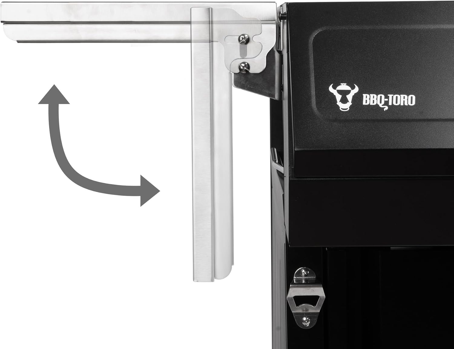 The BBQ-Toro Grill Cart is the perfect addition to your outdoor kitchen. With a generous storage area of 61 x 57 cm, it offers plenty of space to prepare food, keep barbecue utensils handy or serve as a practical side table. By folding out the side shelf, the work surface can be extended to 90 x 57 cm.