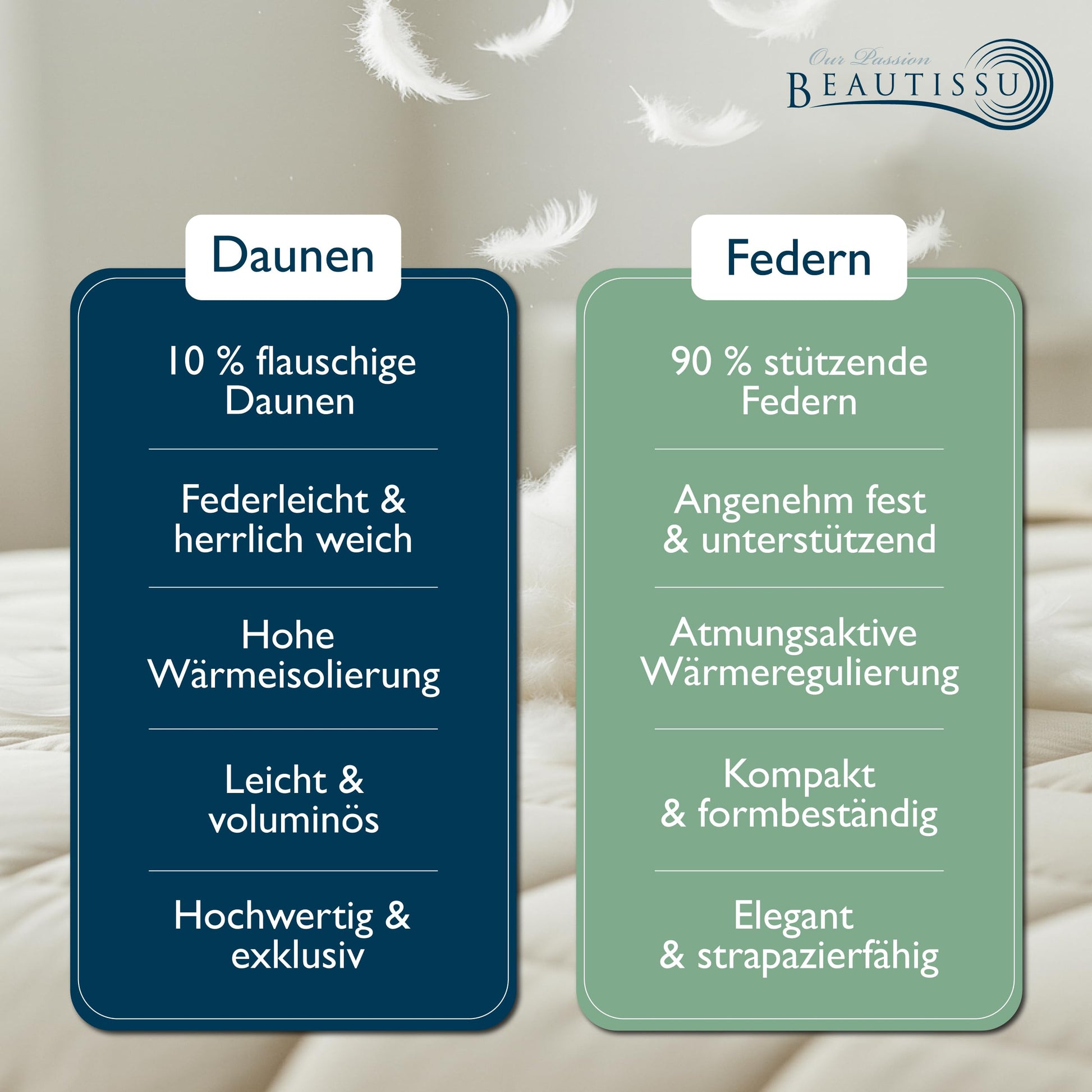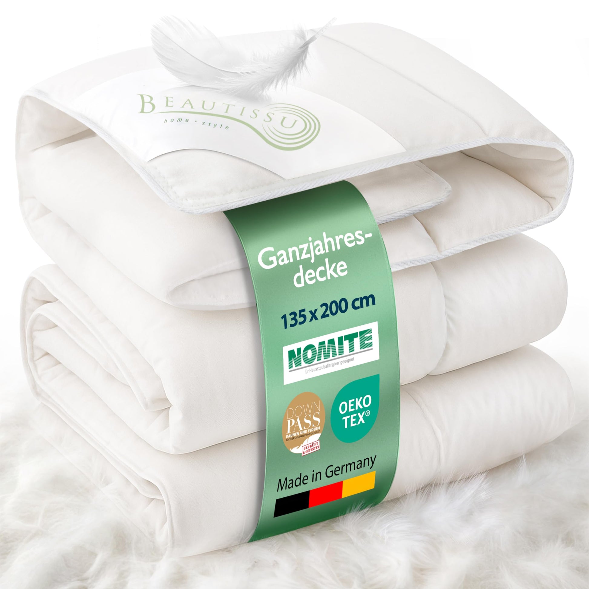 Beautissu All-Year Duvet Feather Duvet 135 x 200 cm with 100% Down and Feathers - Made in Germany - Oeko-Tex, Downpass & Nomite Certified - 100% Cotton Cover Down Duvet 135 x 200 cm Washable - GF