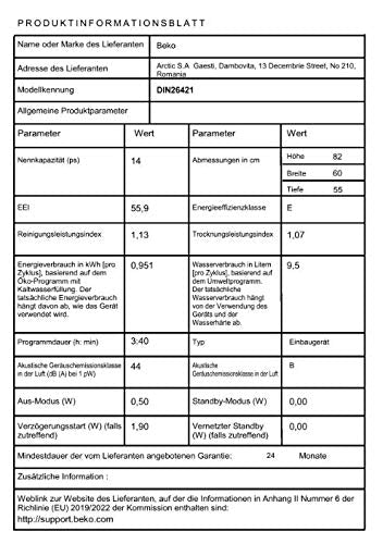Beko BDIN16420 Fully Integrated Dishwasher / Sliding Cutlery Basket / Detergent Compartment with Sliding Lock / Self-Adjusting Door Spring / 14 place settings