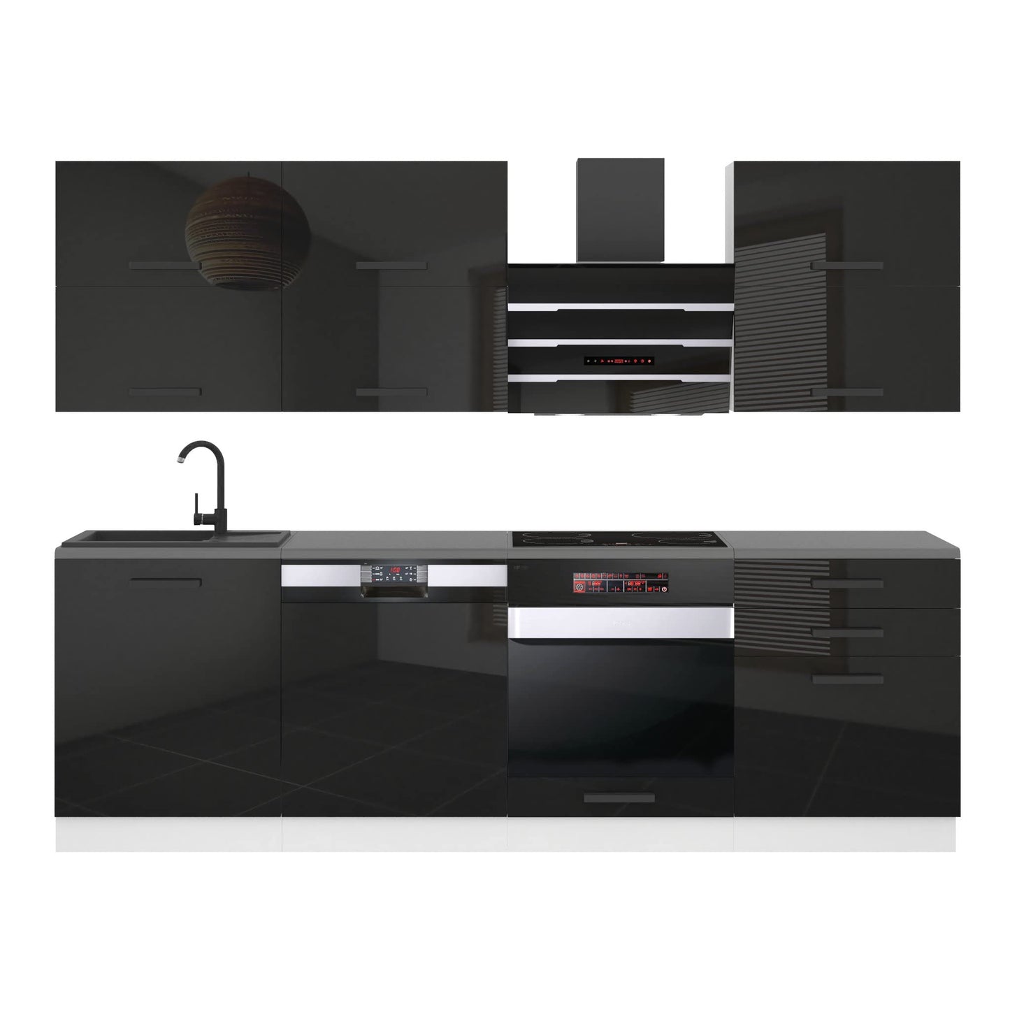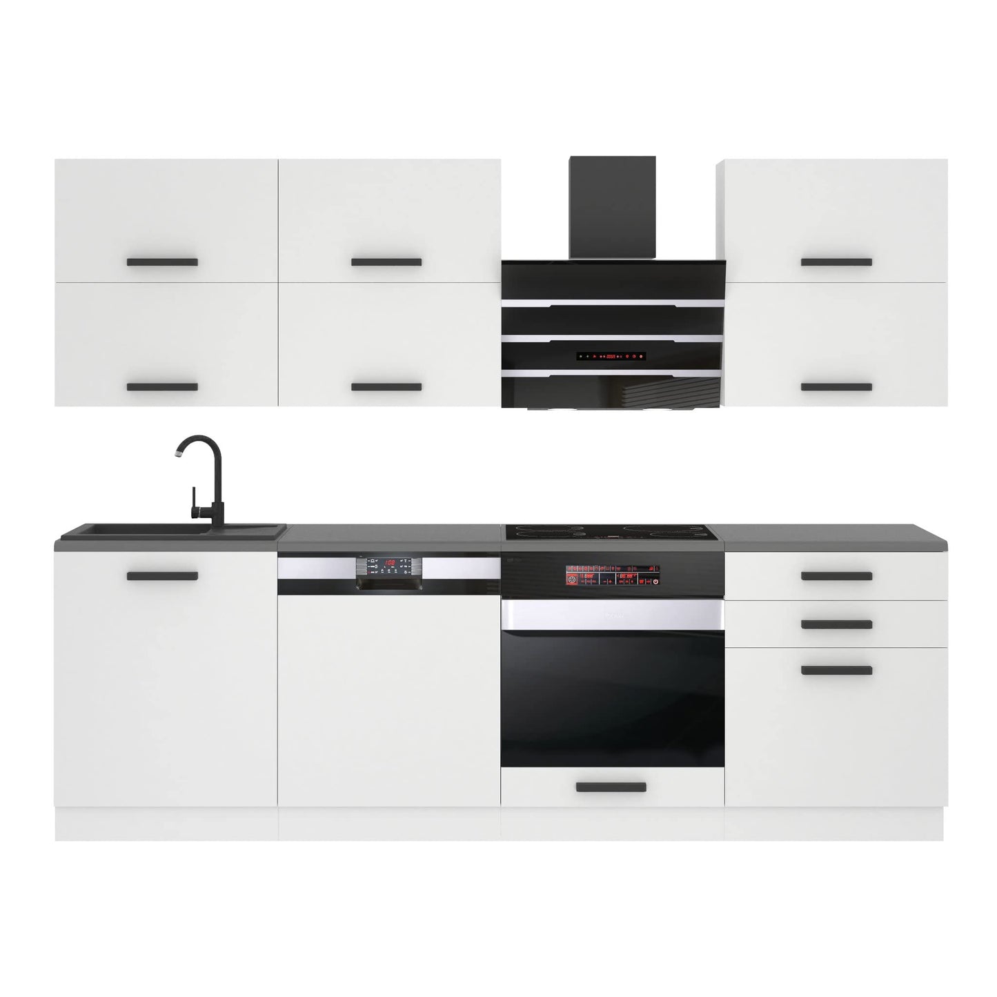- Super-Soft-Touch-System zum sanften Schließen aller Scharniere in allen Fronten des Möbelsets steuerung der sanften Schließung von Schubladen und Gasstoßdämpfern. Das System ist im Set inklusive.