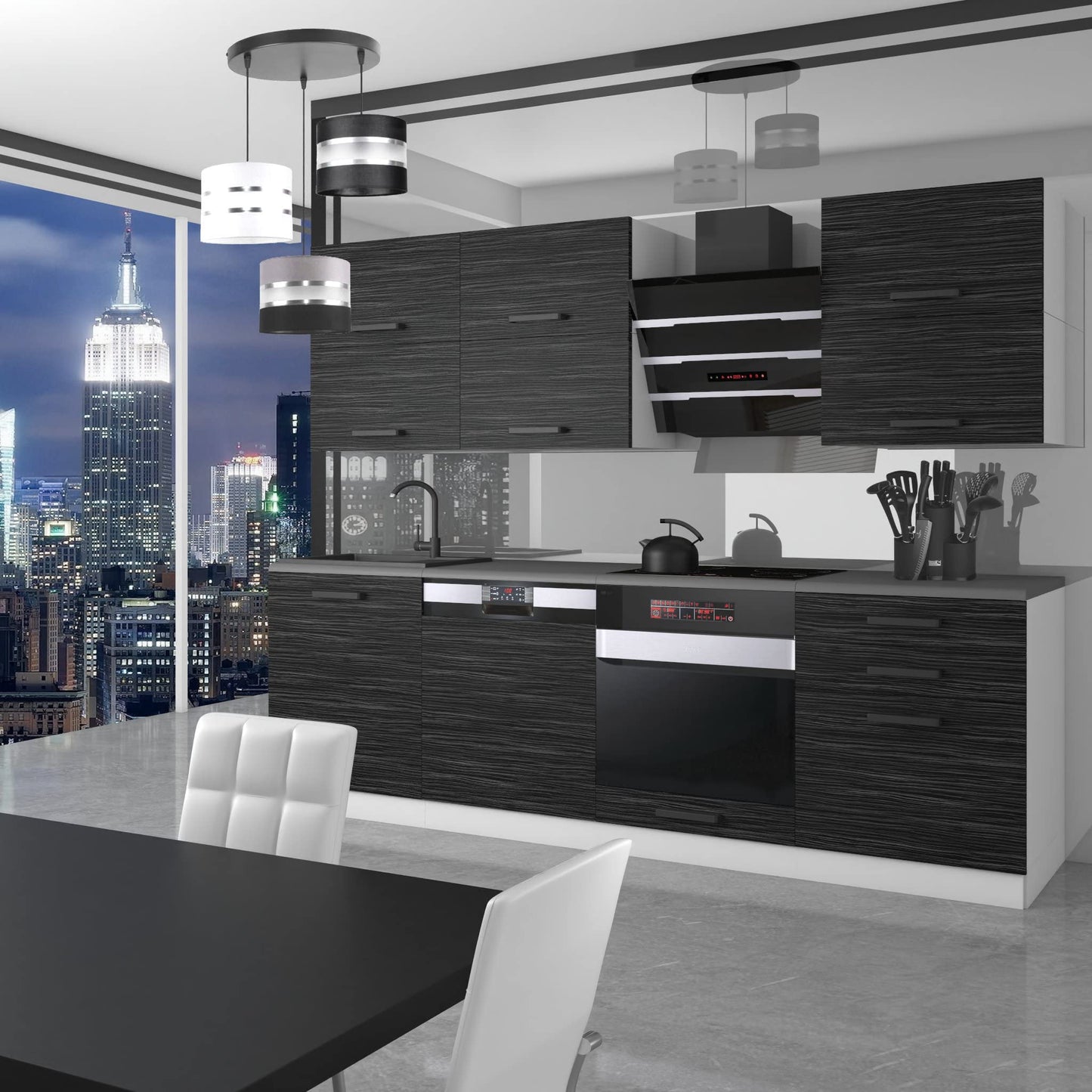 - Das Küchenmöbel-Set verfügt über Metallschubladen mit Soft-Closing-System des Laufmechanismus, was zu einem sehr hohen Nutzungskomfort führt und die Gebrauchsparameter der Schubladen um mindestens die Hälfte erweitert.