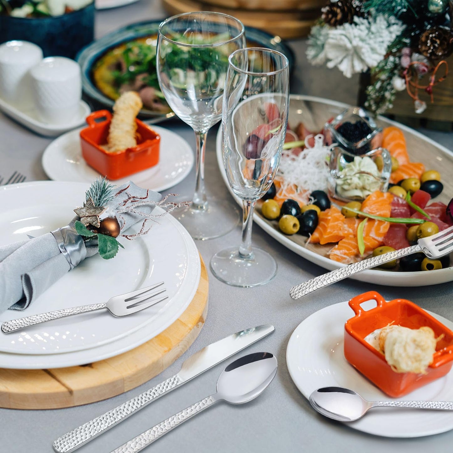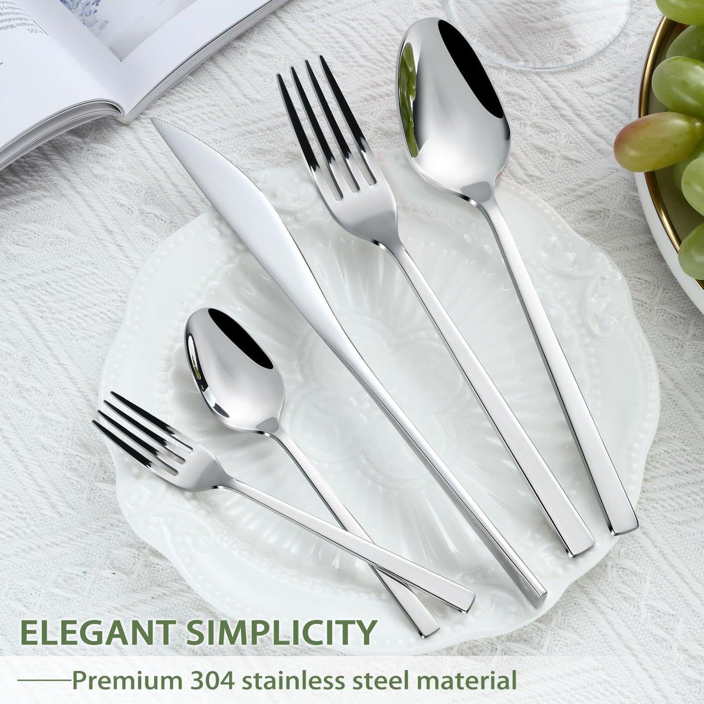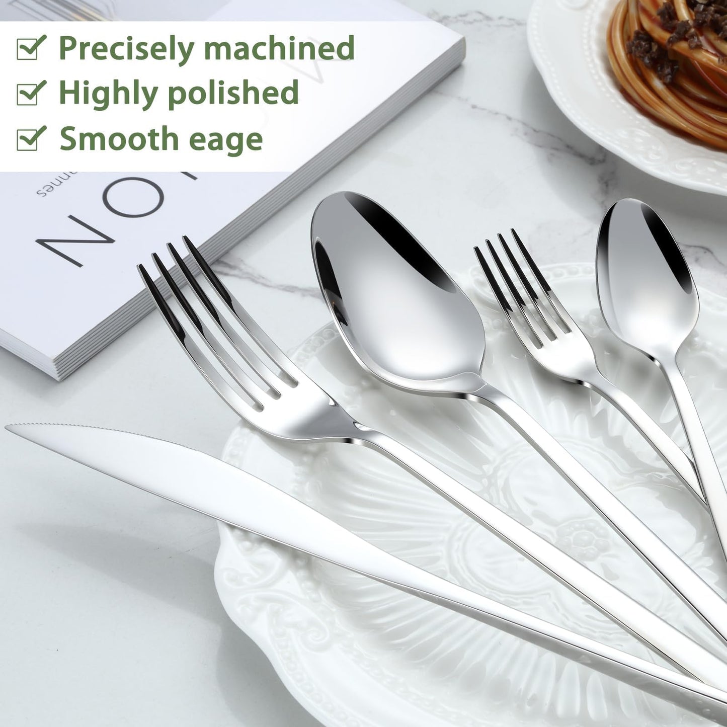 - 【Exquisite Handwerkskunst】 Das Besteckset besteht aus exquisiterem Handwerk, das von besserer Qualität und langlebiger ist. Darüber hinaus wird das Geschirr durch das fortschrittlichere Verfahren sorgfältig poliert, was das ultimative visuelle Erlebnis bieten kann, um Ihr Esserlebnis zu verbessern.