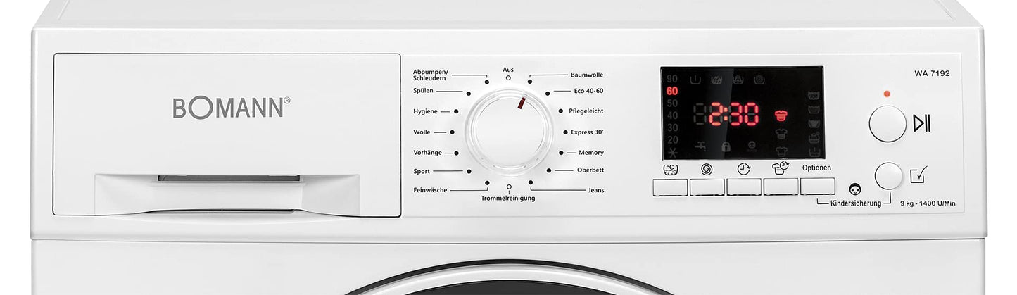 Bomann® Waschmaschine 10kg | max. 1400 U/min | 16 Programme | Bürstenloser DC-Motor: effizient, leise und langlebig | Endzeitvorwahl | Zulaufschlauch-Sicherheitssystem | Washing Machine | WA 7111