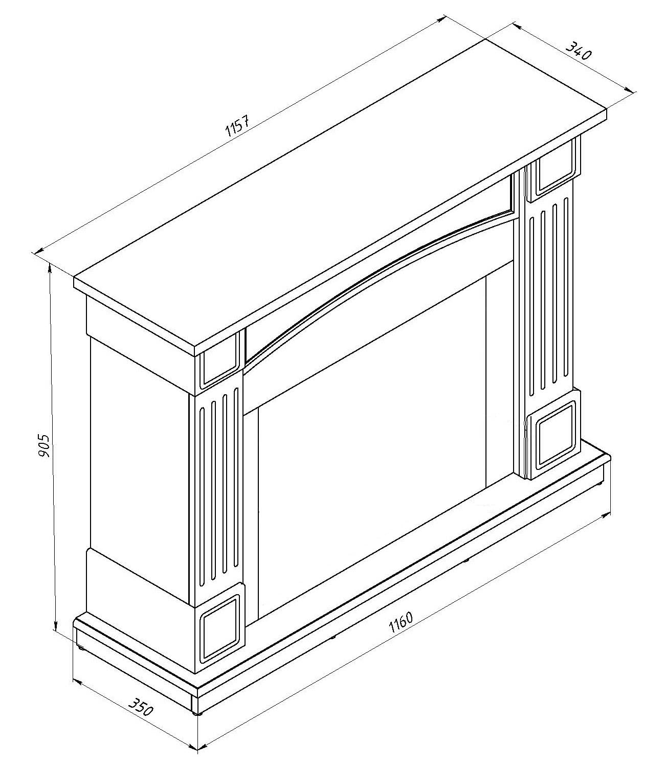 - Overall dimensions (width x height x depth): 1160 х 905 х 350 mm.