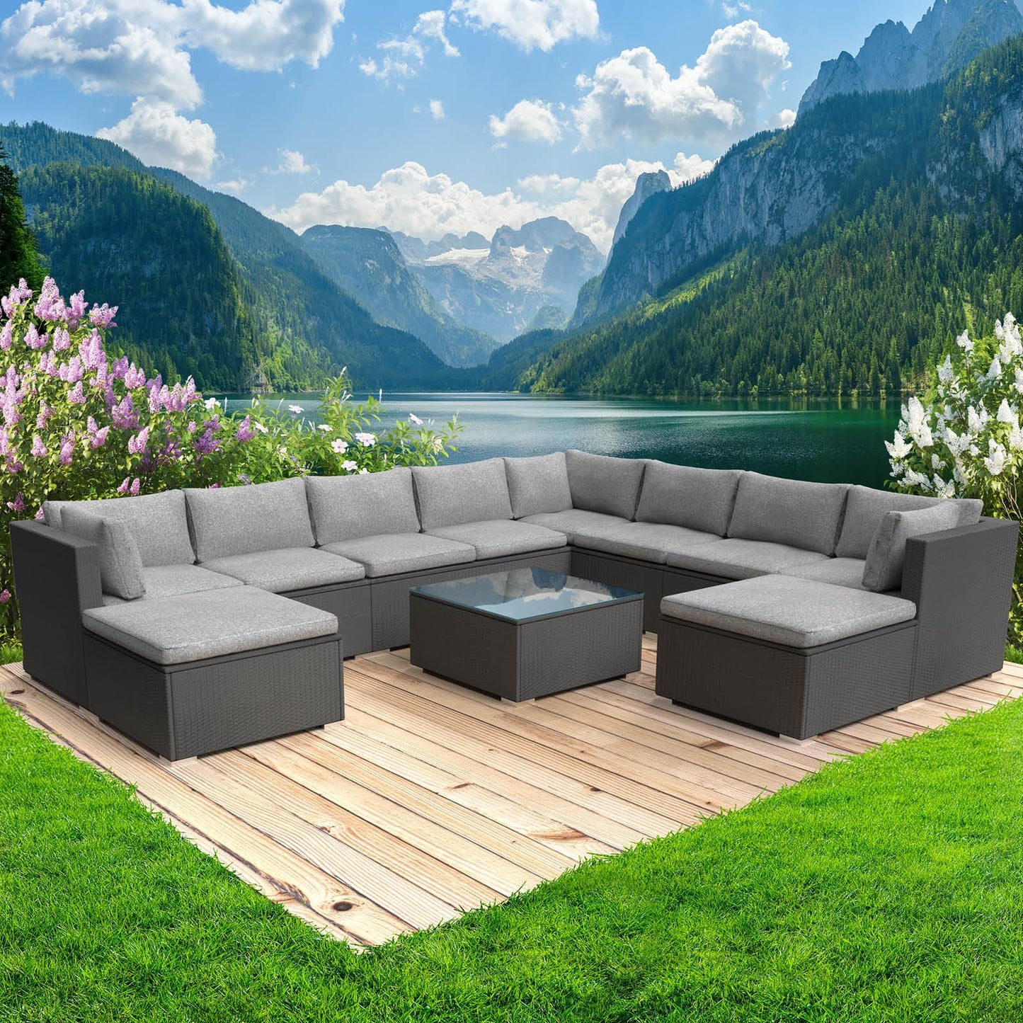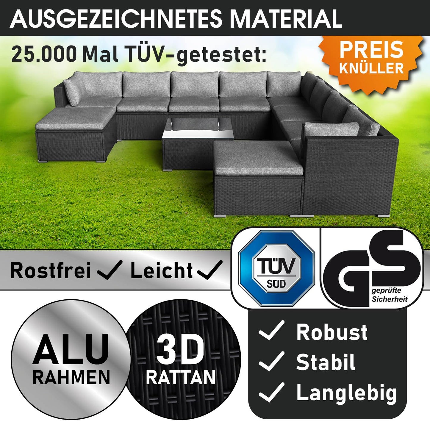 BRAST® Gartenmöbel Lounge Set XXL | 8-12 Personen viele Modelle & Farben | inkl. extra Dicke Kissen | TÜV geprüft | Outdoor Loungemöbel Sitzgruppe Essgruppe Garnitur | Dreams Grau