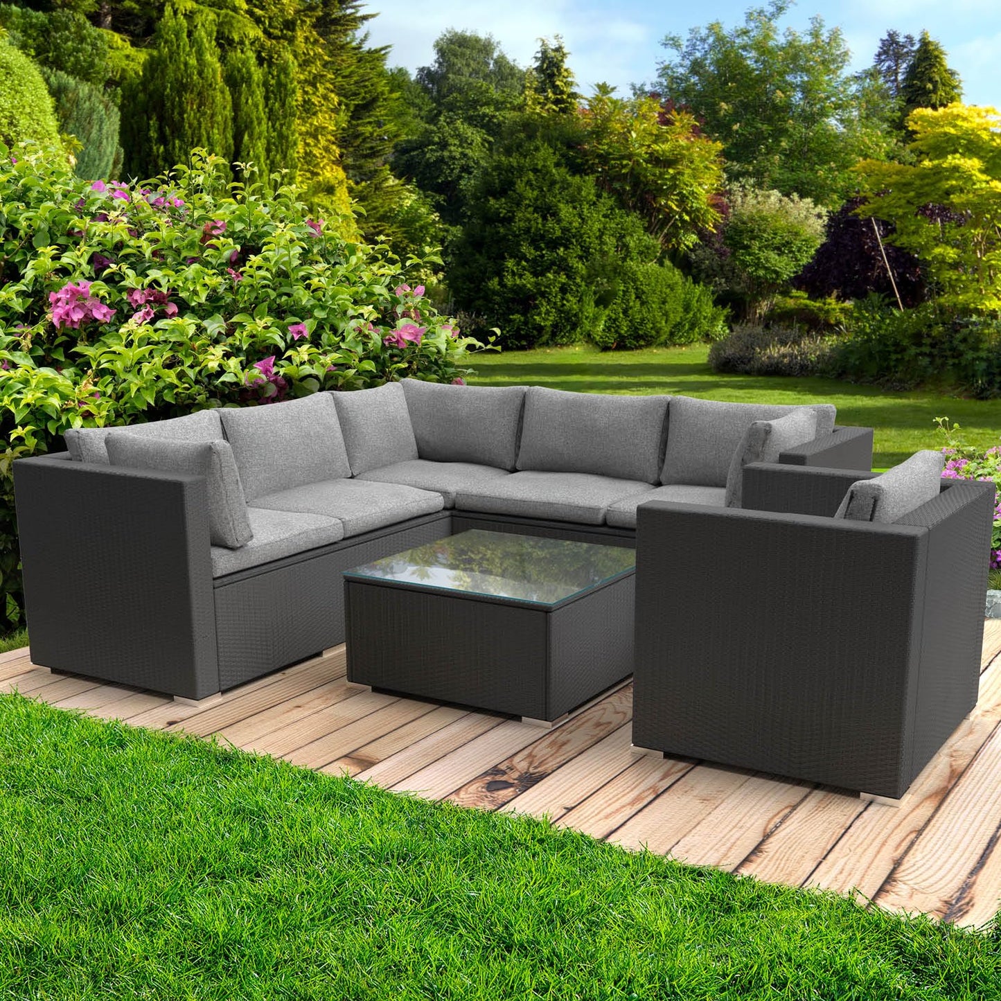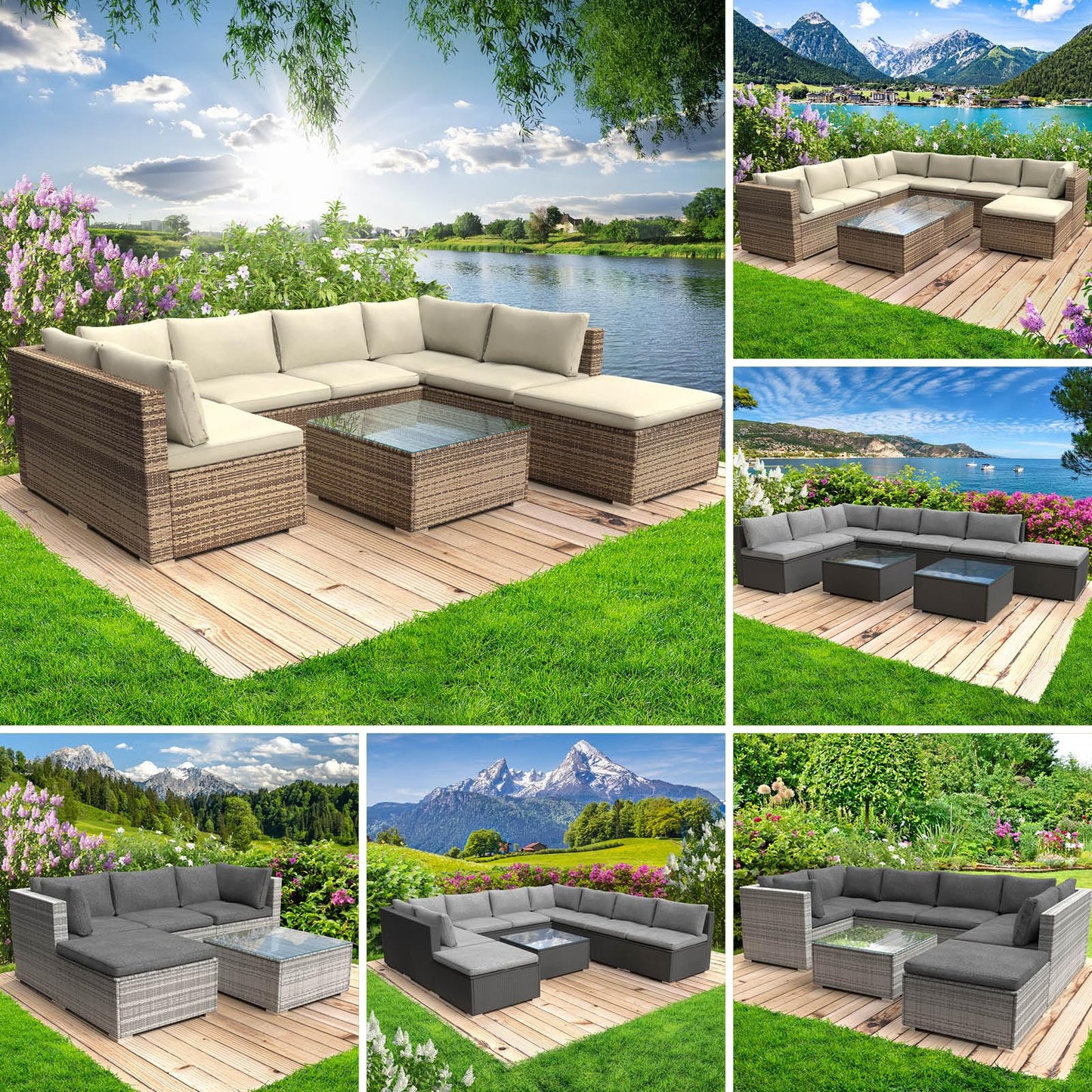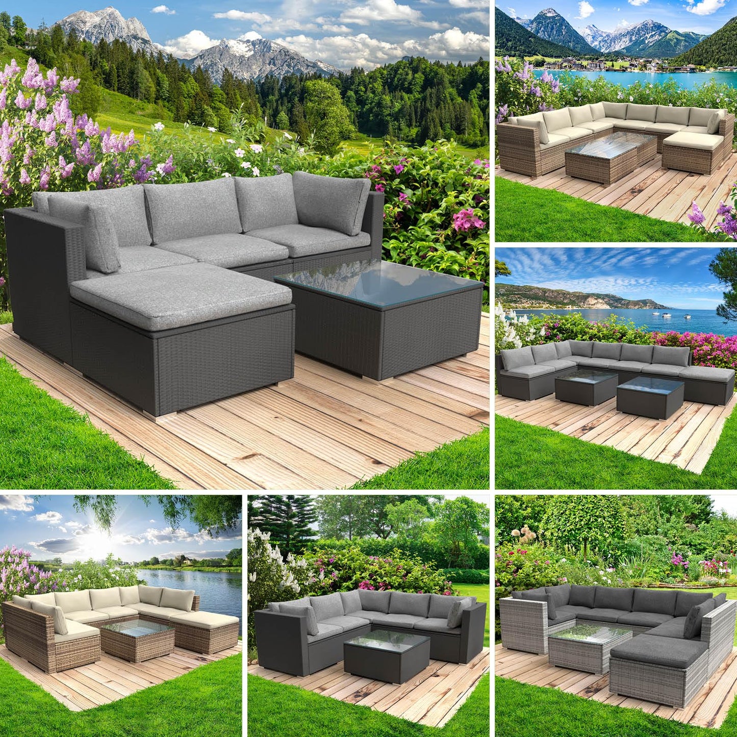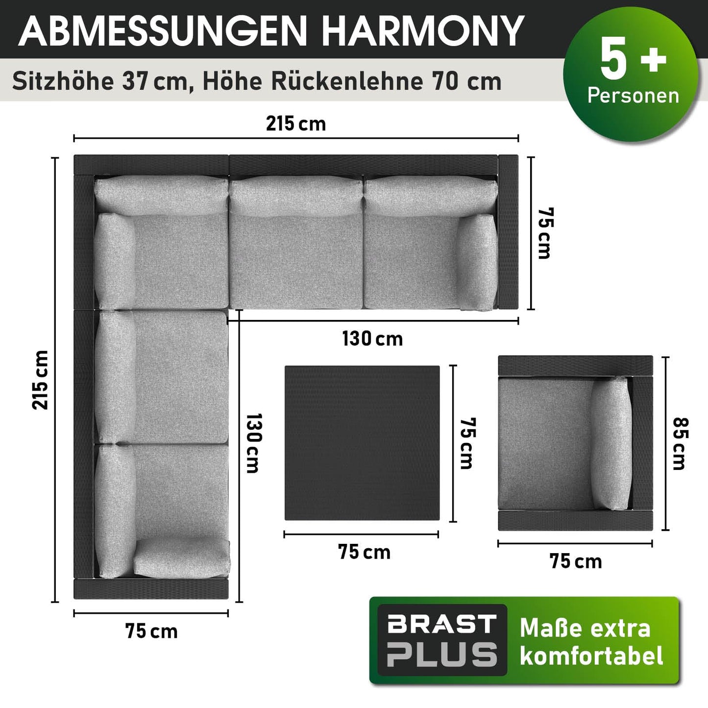 BRAST® Gartenmöbel Lounge Set | 4-5 Personen viele Modelle & Farben | inkl. extra Dicke Kissen | TÜV geprüft | Outdoor Loungemöbel Sitzgruppe Essgruppe Garnitur | Harmony Schwarz