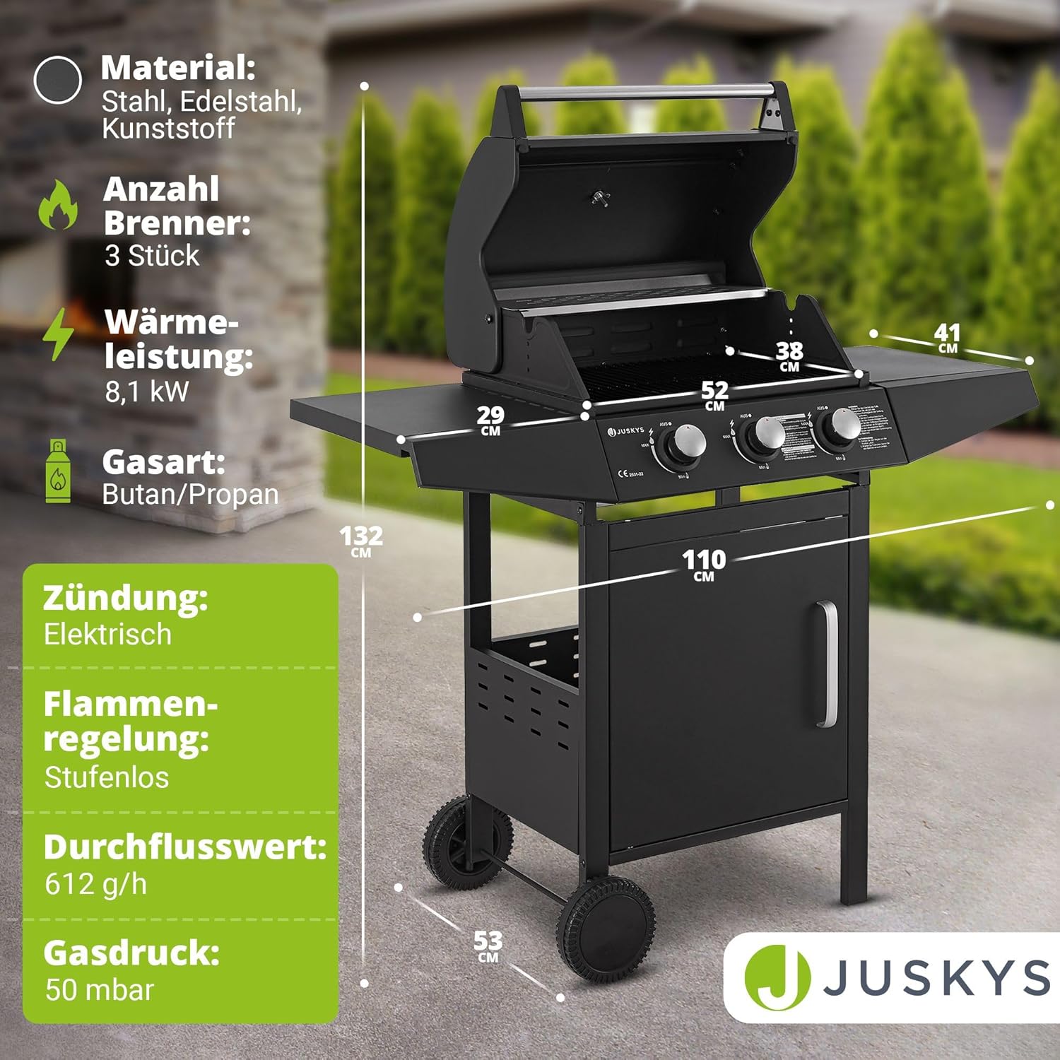 - Pure barbeque pleasure: With the gas BBQ made of powder-coated steel with 3 burners, you can enjoy delicious barbecue specialities; ideal for garden, patio, on the balcony or for camping.