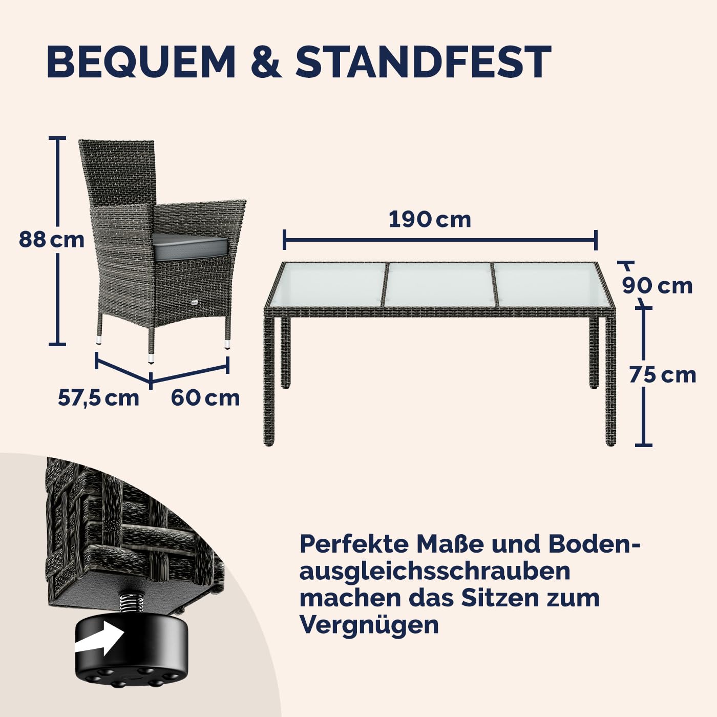 - Füße an Tisch und Stühlen höhenverstellbar