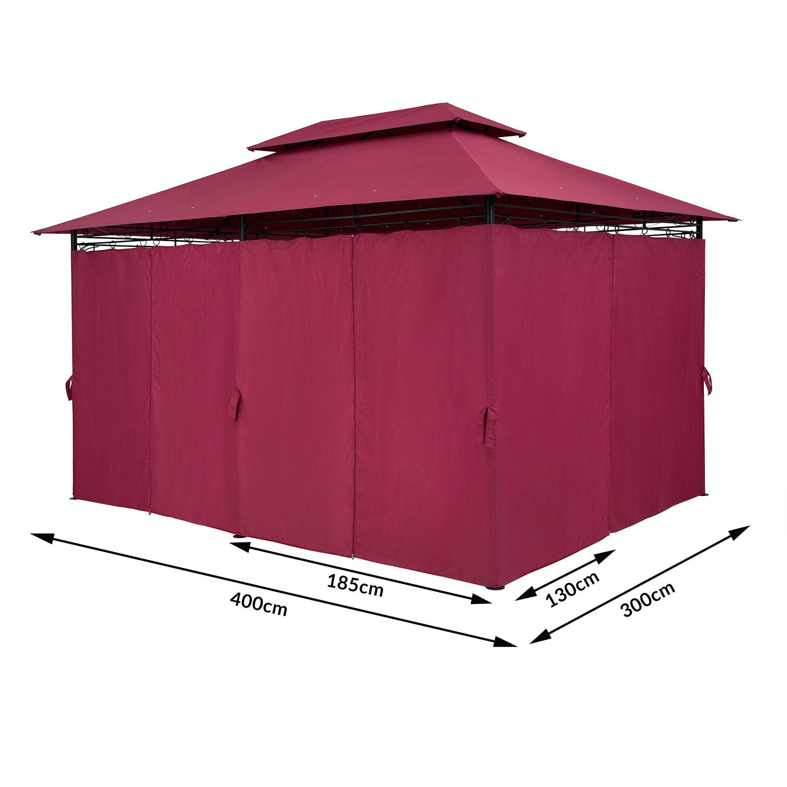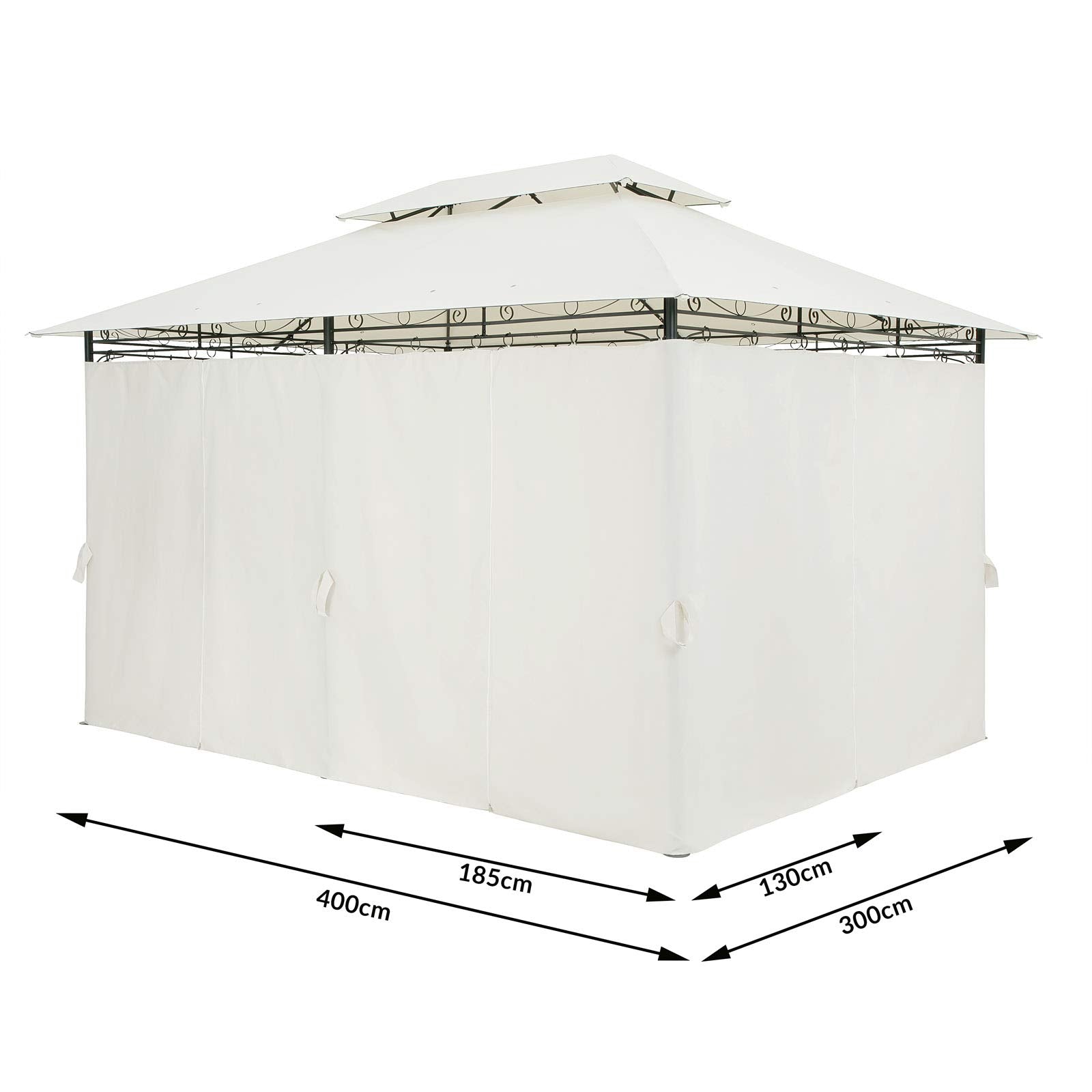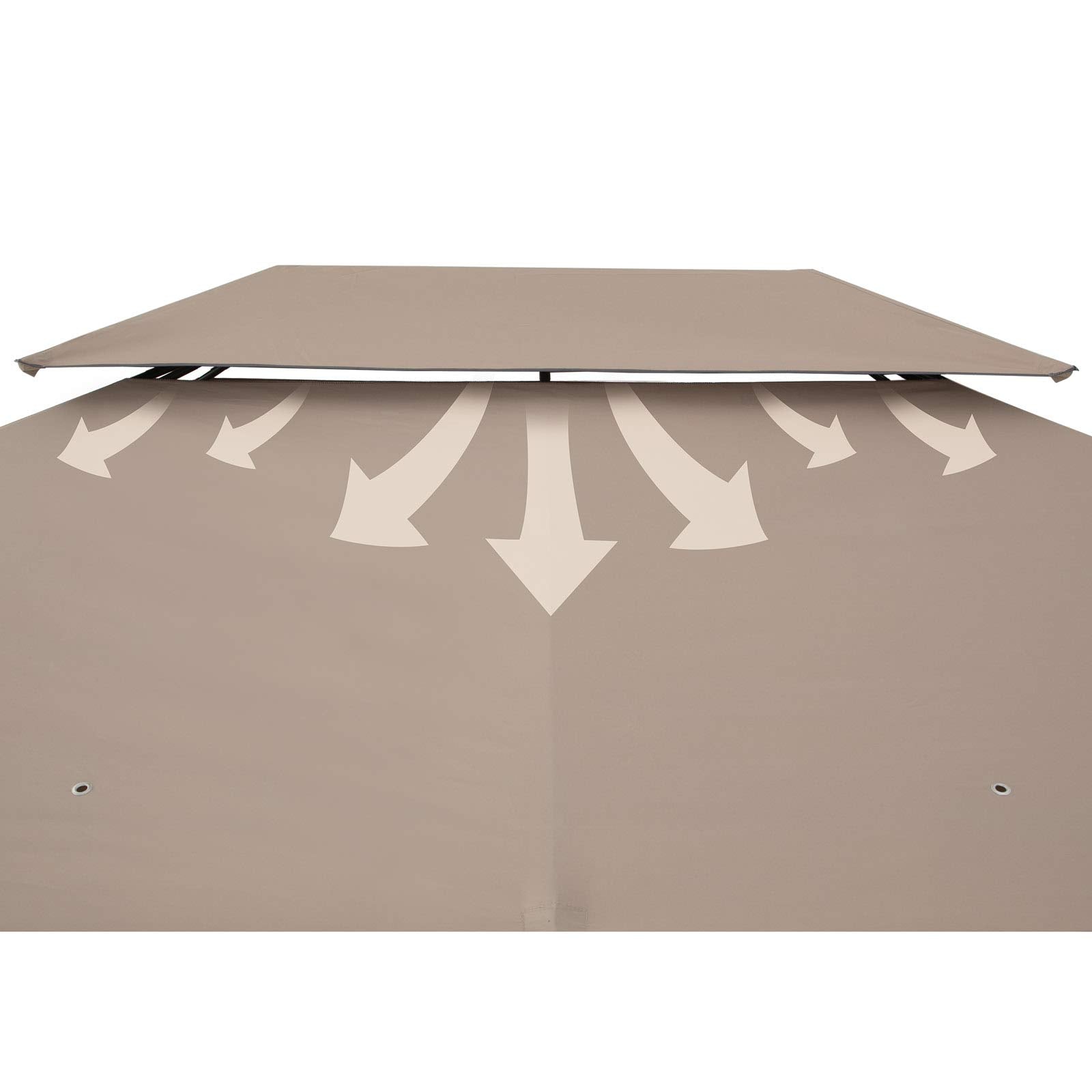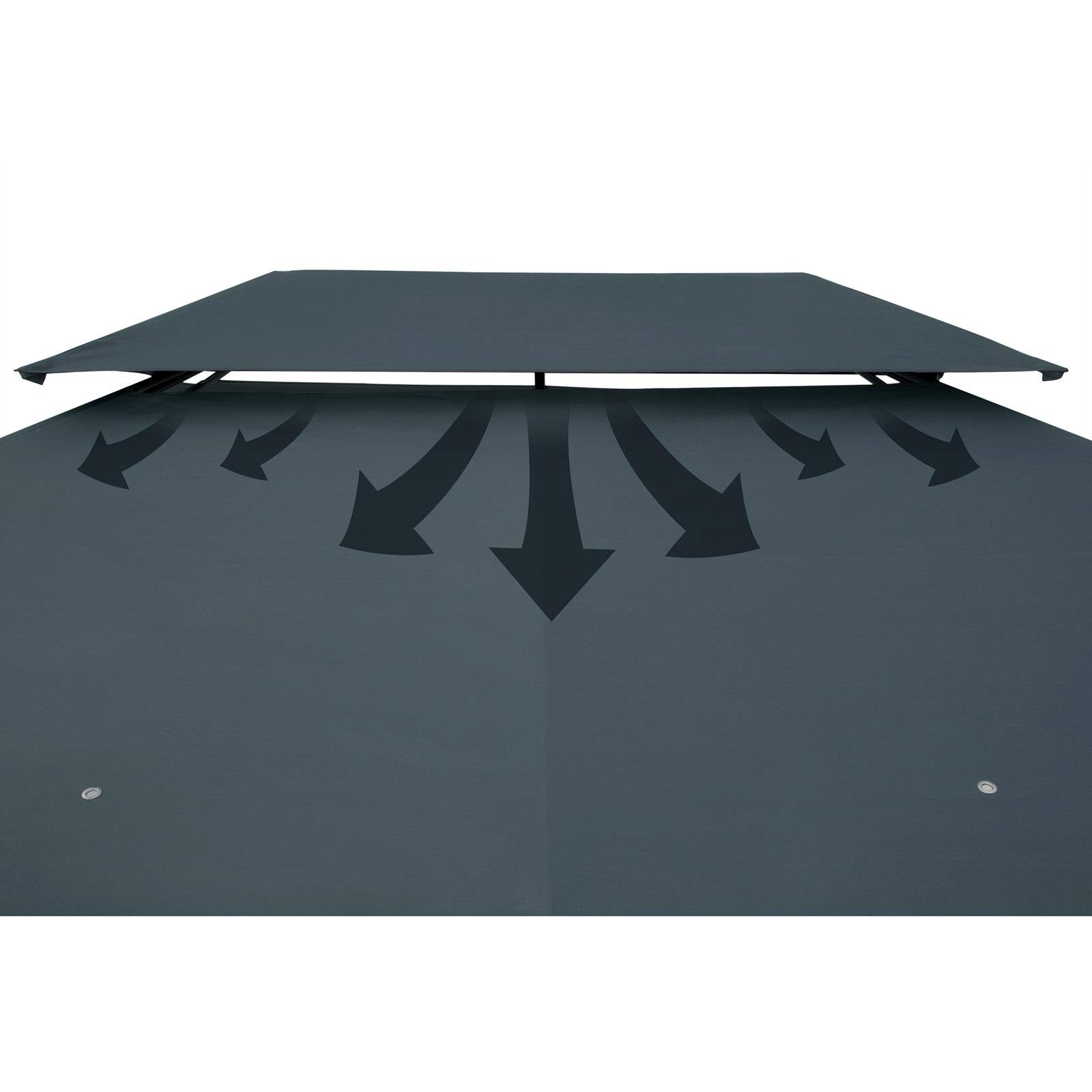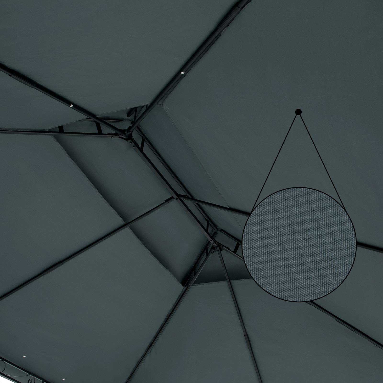 - SCHATTENSPENDER: Mit diesem modernen Pavillon können Sie die sonnigen Tage genießen. Die 3x4m bieten ausreichend Platz im Schatten. Dank der Dachhaube kann die Luft wunderbar zirkulieren und die UV 50+ Dachbespannung besteht aus reißfestem Polyester.