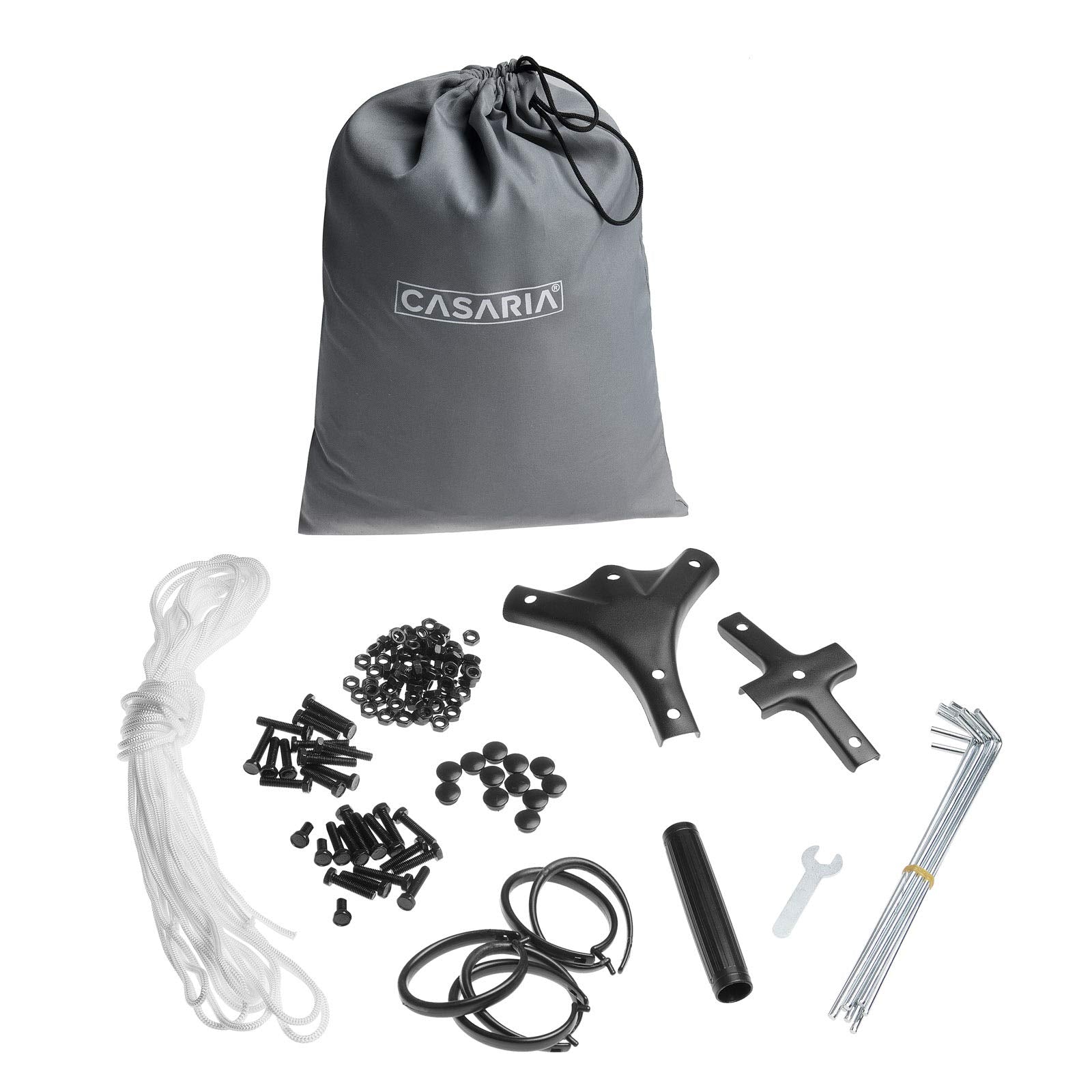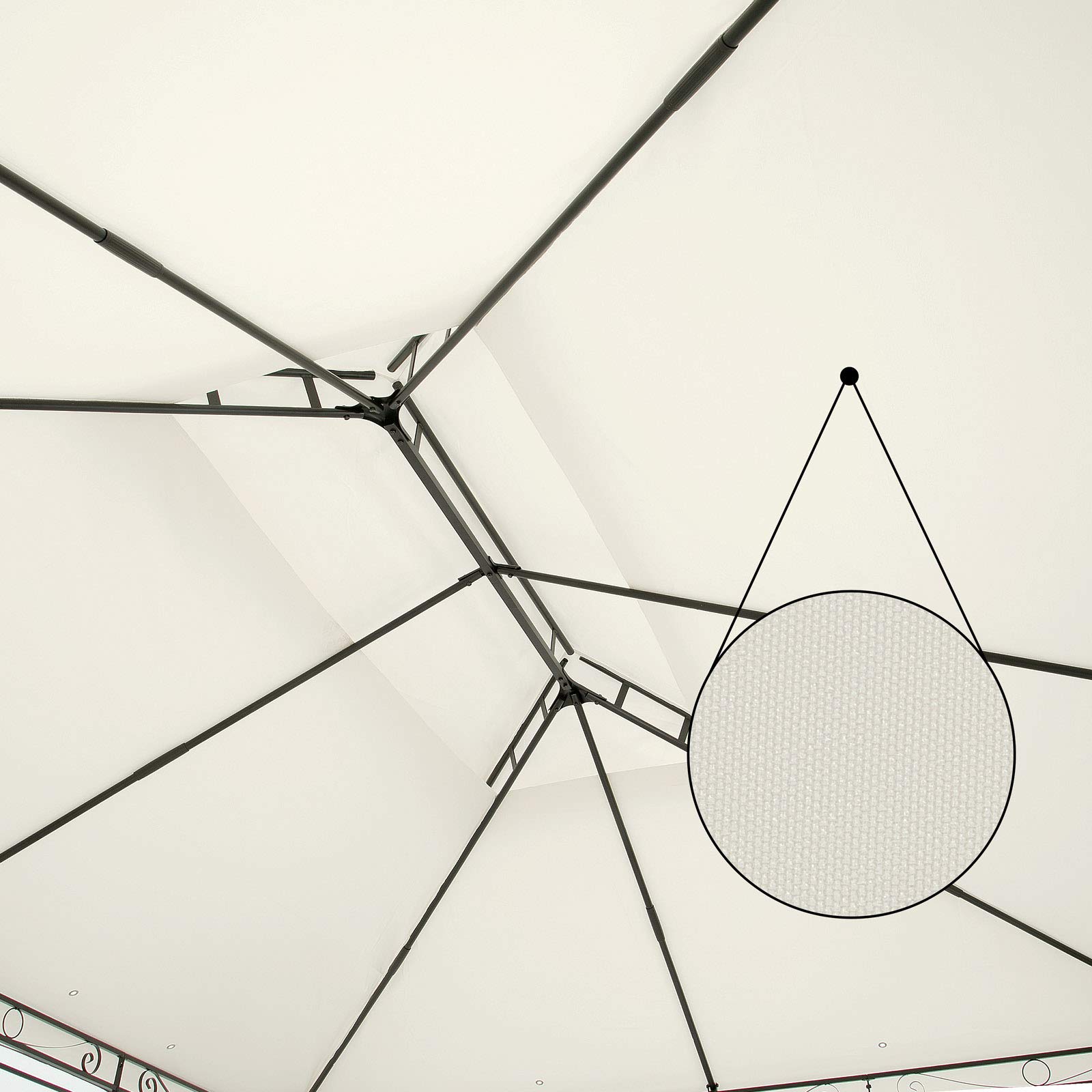 - PRAKTISCH UND STABIL: Die Innenseite des Dachs besteht aus einer wasserabweisenden PU-Beschichtung. Die Pulverbeschichtung der Metallkonstruktion bietet Schutz vor Korrosion. Mit den mitgelieferten Heringen und Abspannseilen kann der Pavillon stabil im Boden verankert werden.