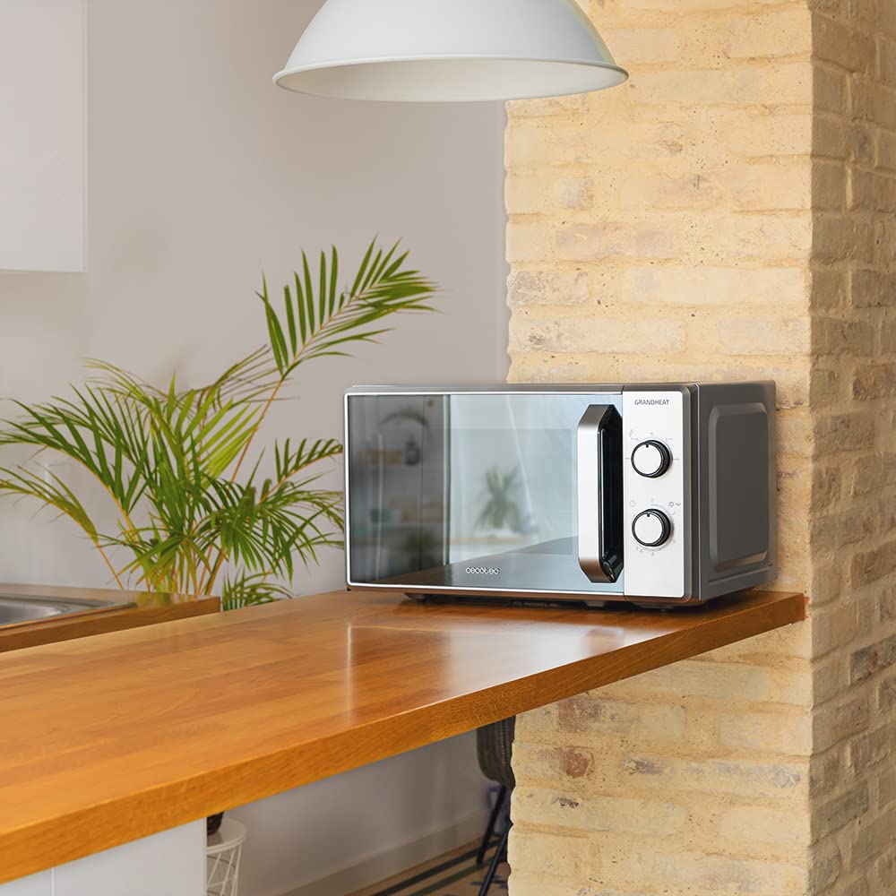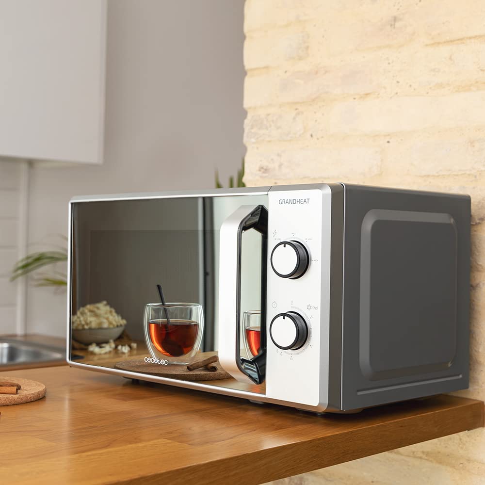 Cecotec Microondas ProClean 3160 Mirror, 20 L, Ready2Clean Coating, 800 W Grill, 9 Levels, 30 min Timer, 3D Wave Technology, Silver, Mirrored Door