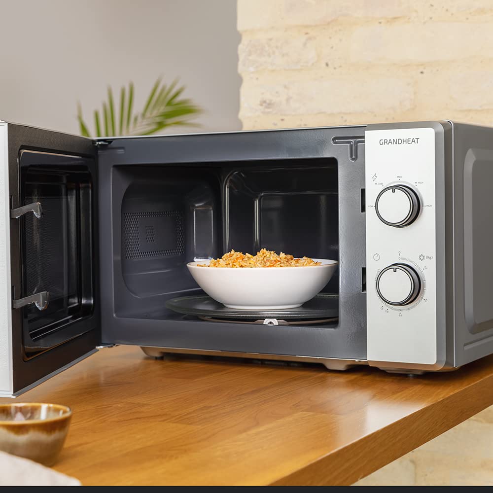 - 20 litre microwave; elegant silver design with mirrored door front and metallic details