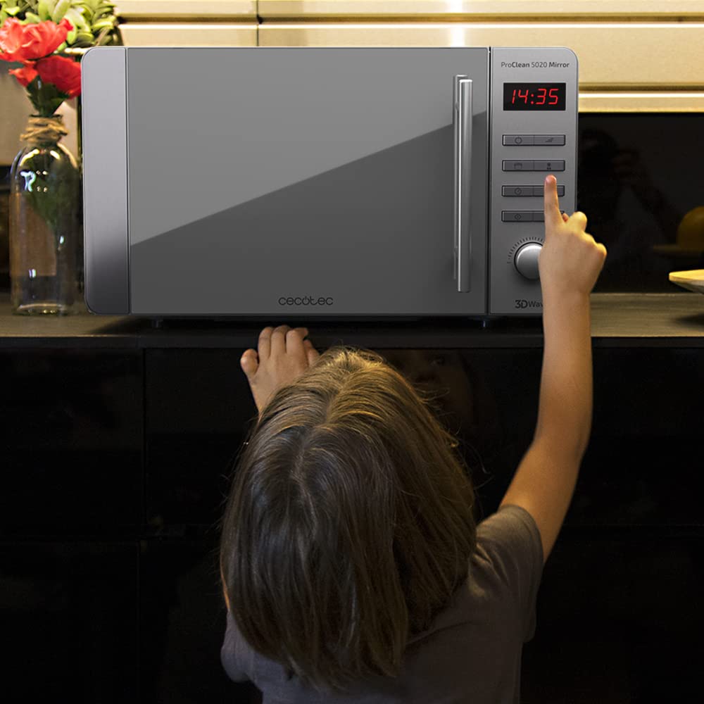 Cecotec Microwave Pro Clean 5020 Mirror, 700 W, 20 L Polished, 3D Wave, Ready 2 Clean, LCD, 60 Minutes Cooking Timer, 8 Programmes, Stainless Steel in Silver
