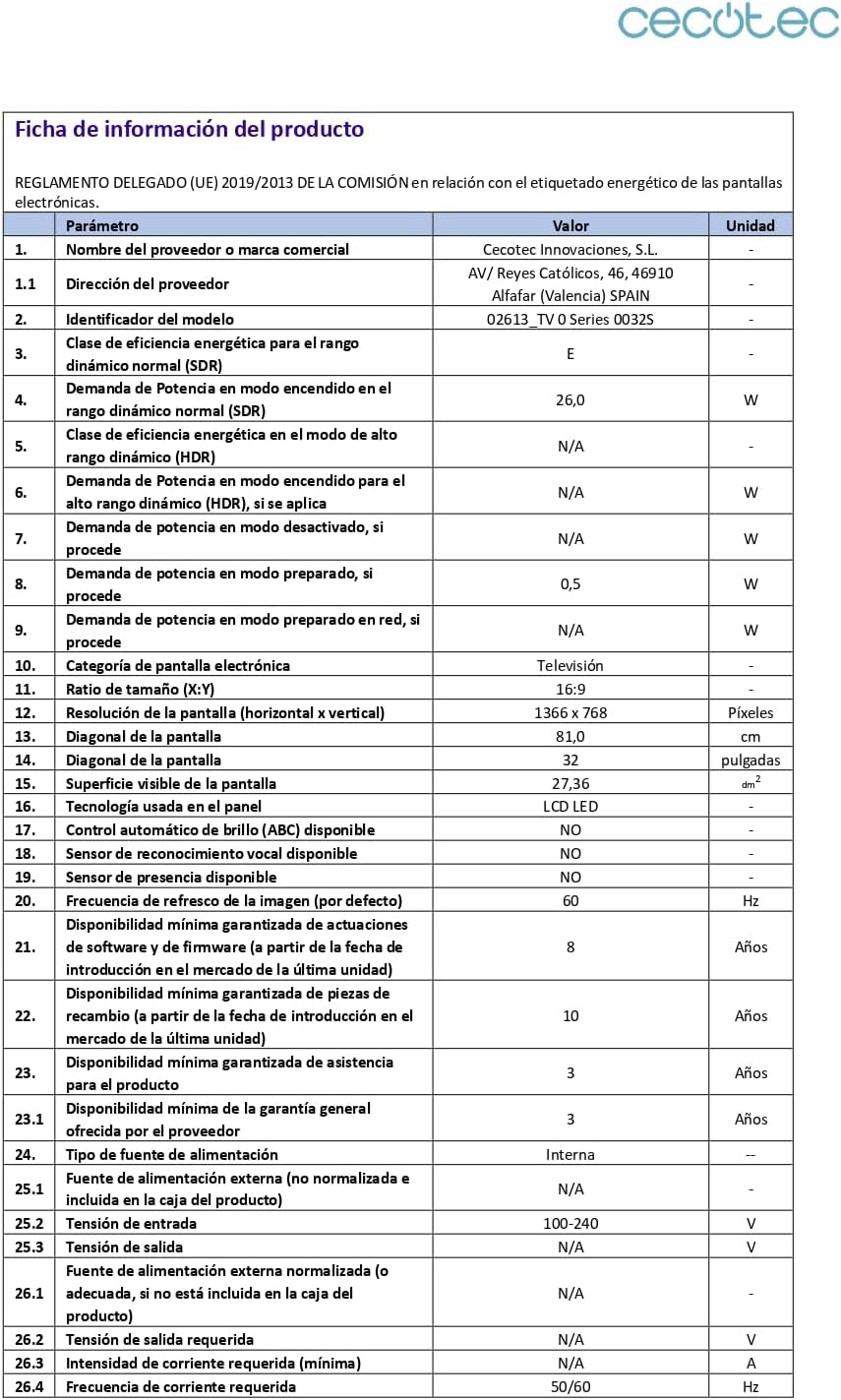 Cecotec TV 32 Inch TV LED 0 Series 0032S. 32 Inch Screen, HD, Optimal Resolution for Pictures and Videos, Dolby System, Flash Memory, HDMI/USB Connectivity, Remote Control