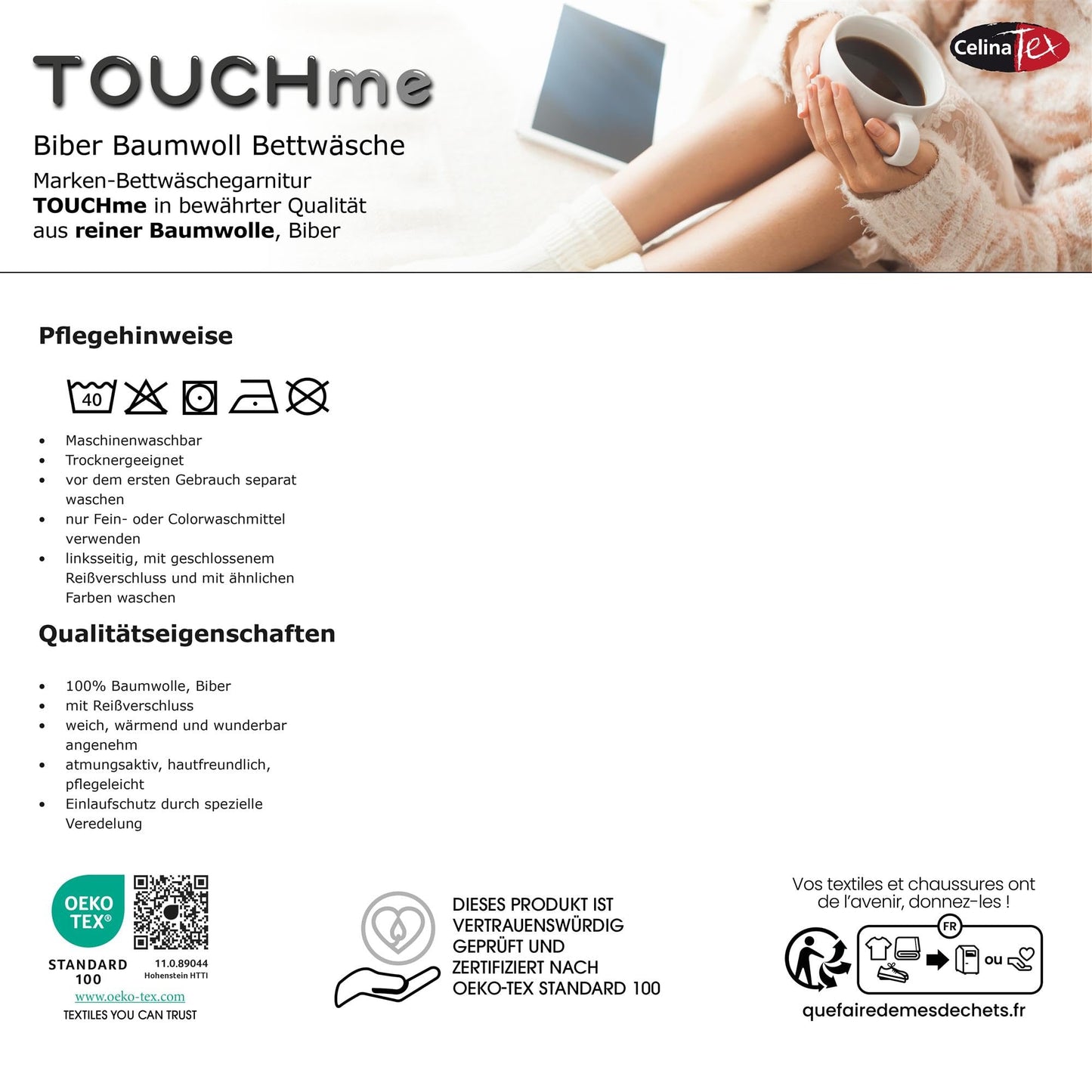 - Our stunning Touchme bedding series is a cuddly soft brand set made from 100% cotton, in warm, fine flannelette quality with a high cuddle factor and a fabric weight of approx. 150 g/m².