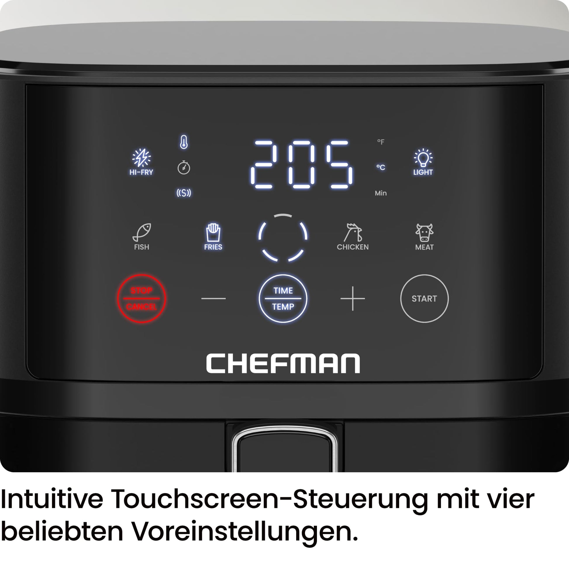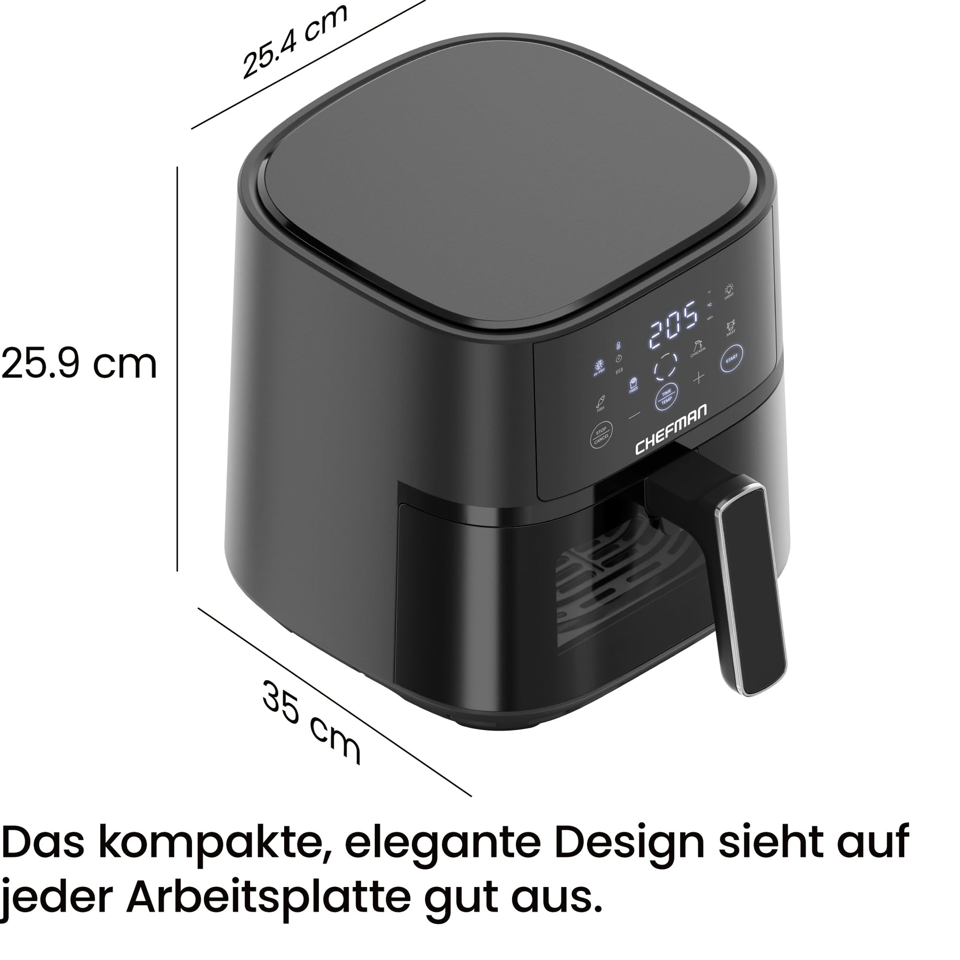 Chefman Hot Air Fryer - 3.75 L Compact Hot Air Fryer for Quick Meals, with Hi-Fry Technology, Viewing Window, Touch Controls, Non-Stick and Dishwasher Safe - Black