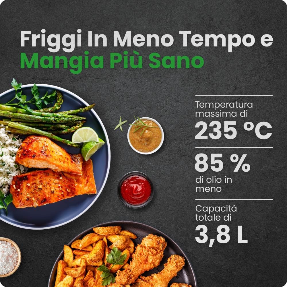 - STYLISH AND COMPACT: The elegant, narrow design of this hot air fryer maximizes the capacity of 3.75 litres while minimizing countertop space. Their compact size makes them a great space saver that fits perfectly on your countertop or in your cabinets