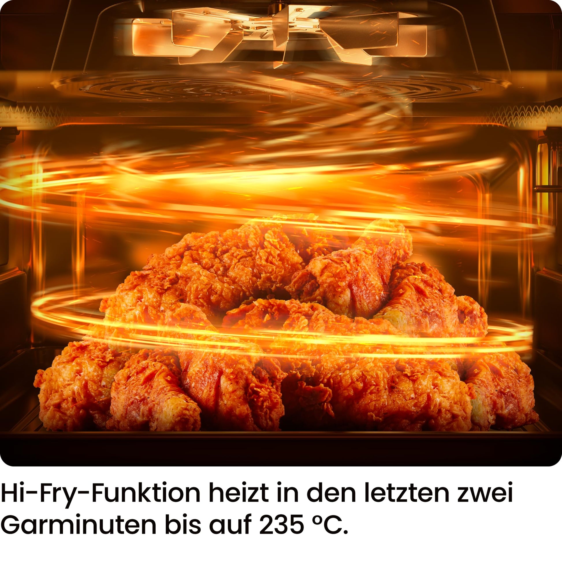 - 235°C HI-FRY TECHNOLOGY: Achieve the perfect crispness of your favourite fried foods. Increase the heat to 235°C during the last two minutes of cooking the airfryer: perfect for extra crispy chicken thighs and chips