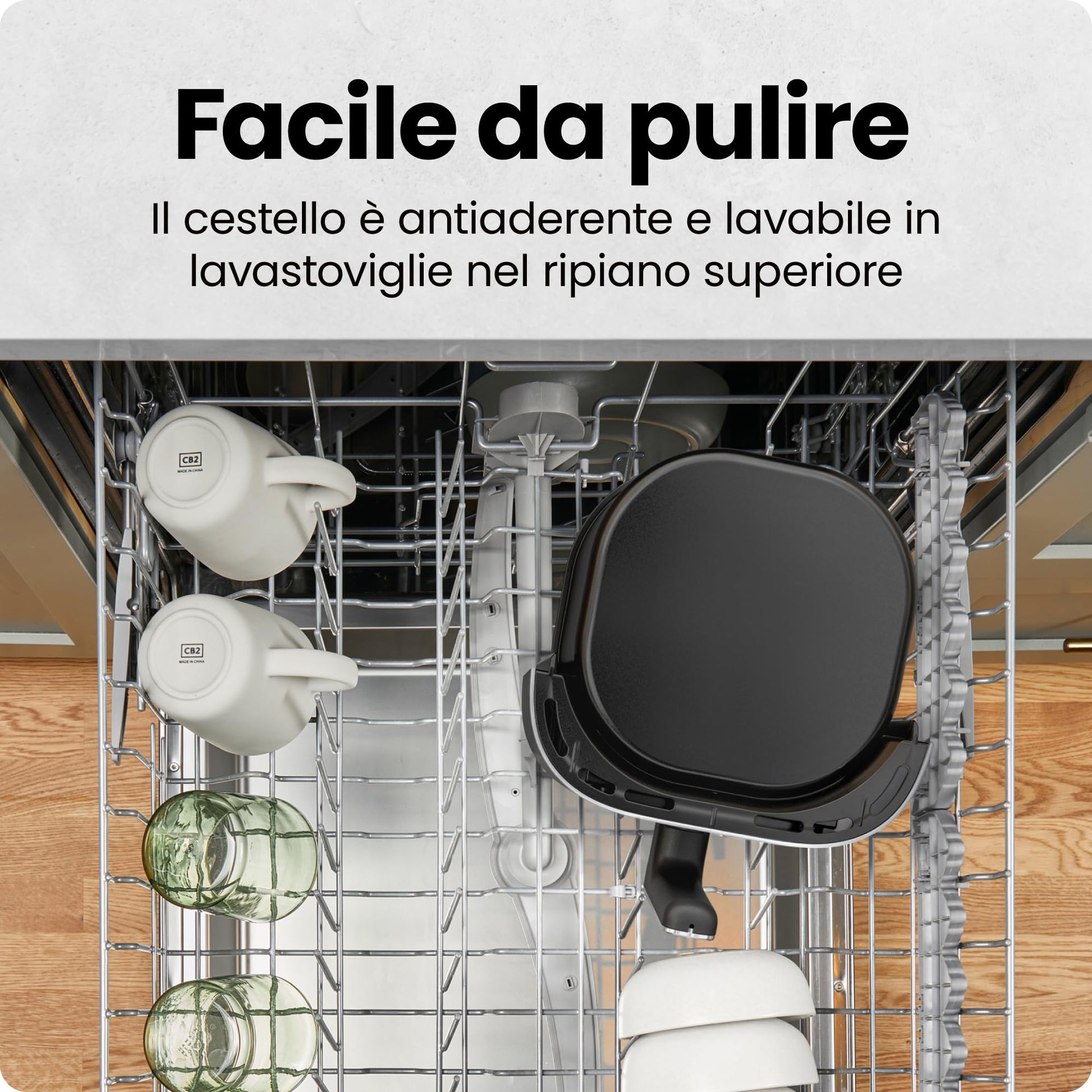 - EASY CLEANING The 3.75 litre non stick basket and rack are both dishwasher safe, making cleanup quick and easy. The elegant matte black surface of the hot air fryer is timeless and can be easily wiped clean with a damp cloth