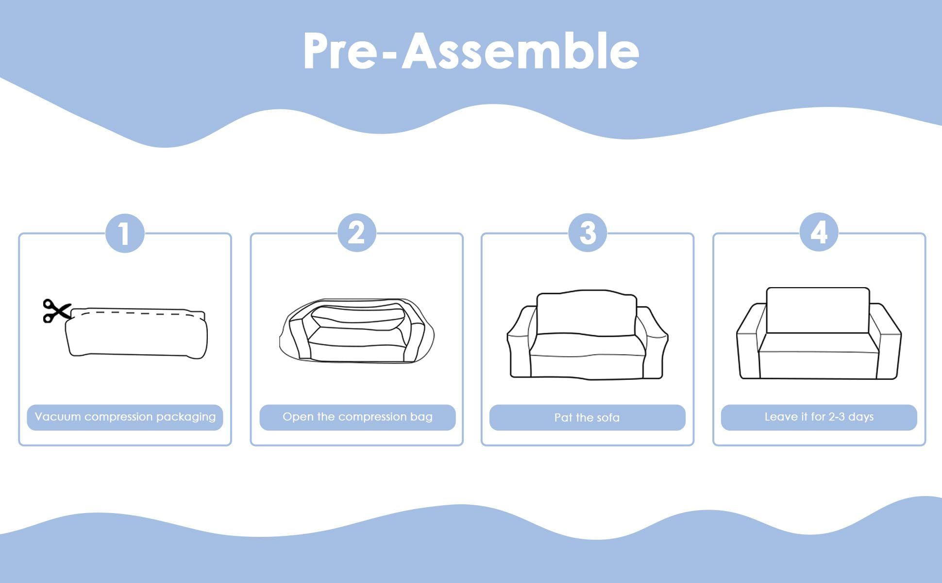 - Warm tips: the children's sofa is vacuum packed and pre-assembled. When you receive it, just open it and wait 2-3 days for it to reach its full shape.