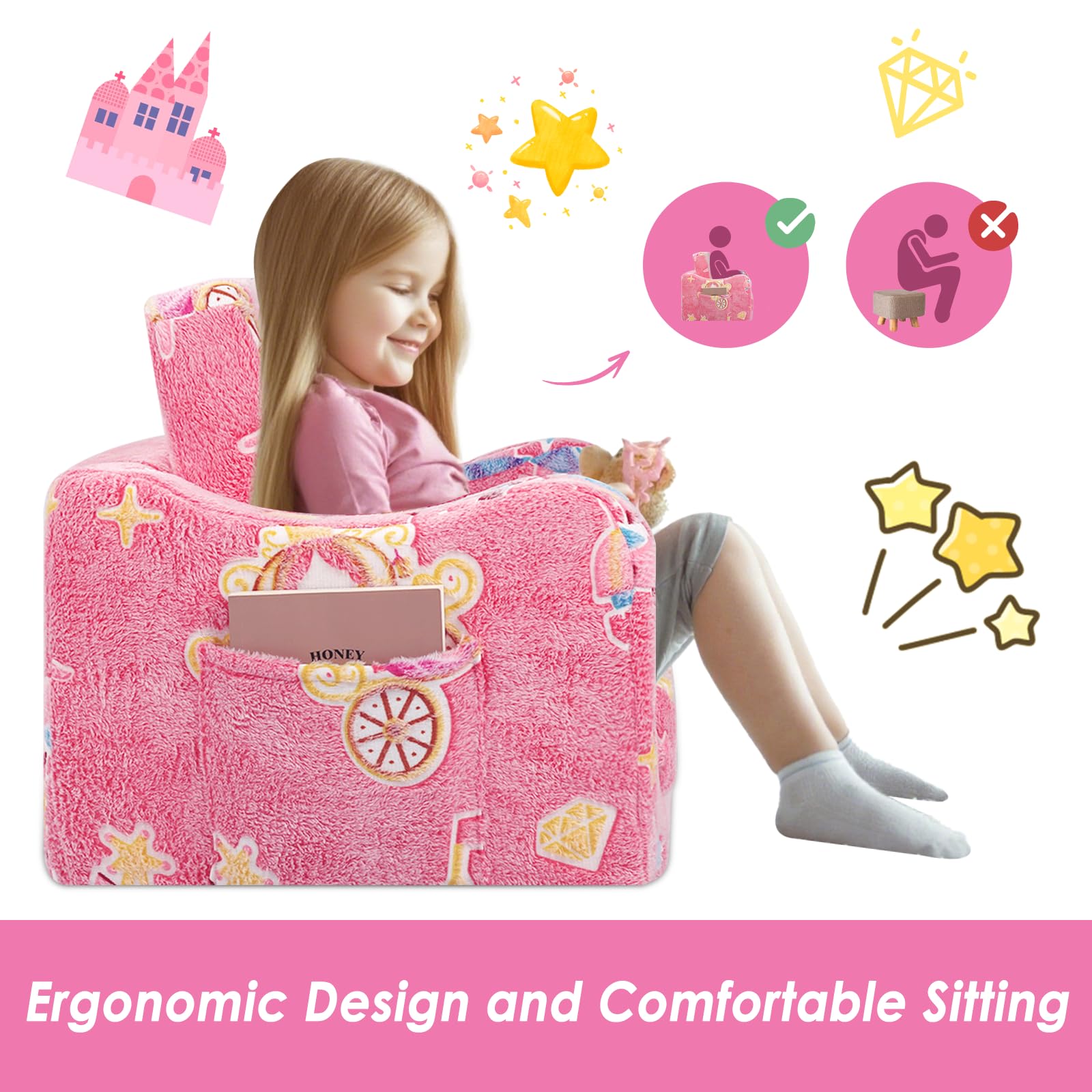 - High Quality:Soft and cuddly sofa cover, filled with thick high elastic sponge, comfortable and stable for kids. The sofa cover can be removed with a zip and machine washed, a great Christmas and birthday gift for children