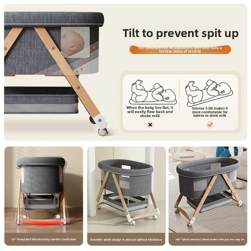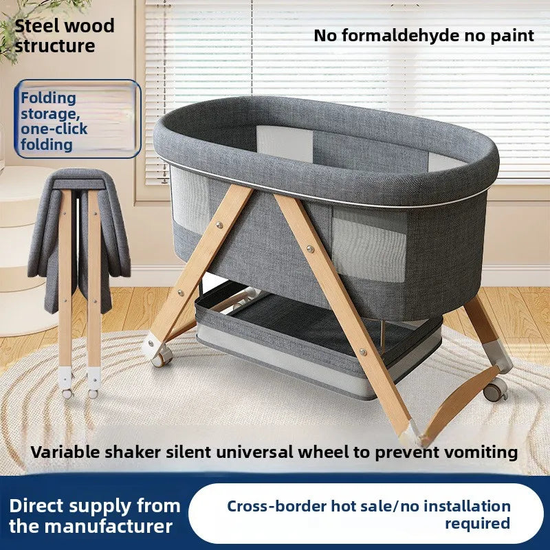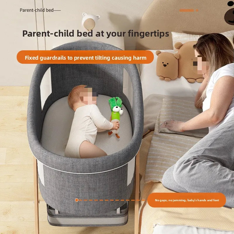 Children's solid wood splicing large bed one-click folding movable newborn cradle bed Children's small bed