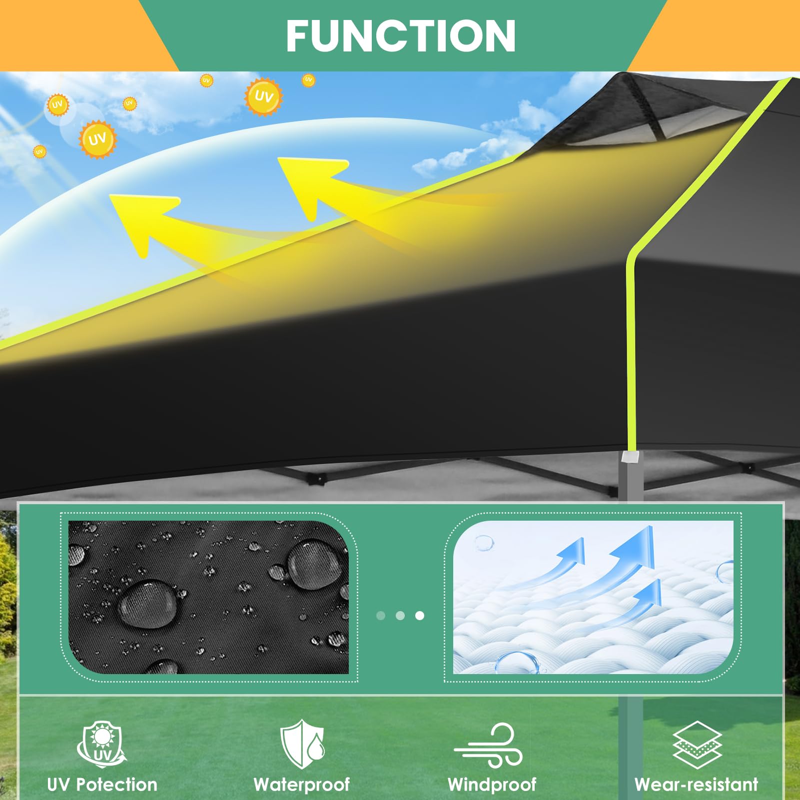 - Ventilation design and waterproof, UV-resistant material: 2024 version of the folding gazebo 3 x 6 with innovative ventilation design improves air flow and increases stability to prevent the gazebo 3 x 6 from being blown away by the wind. Made of UPF 50+ material, blocks 99% of UV rays, is waterproof and provides shade, ideal for various outdoor activities