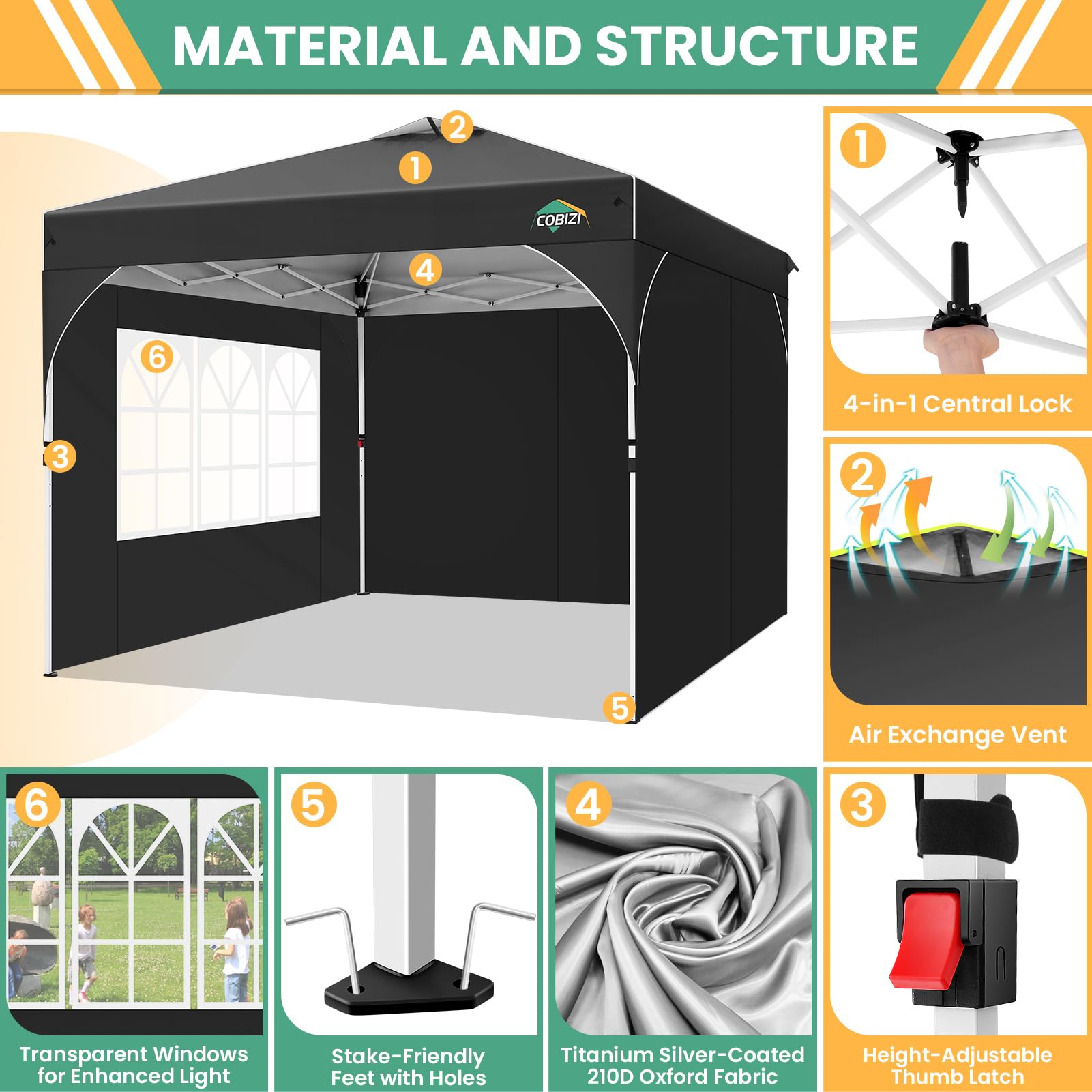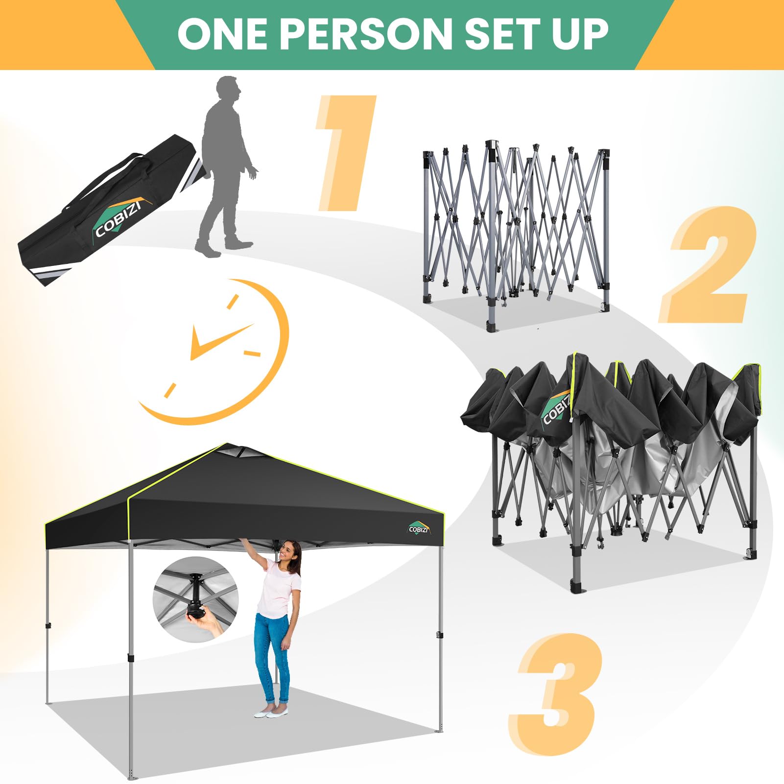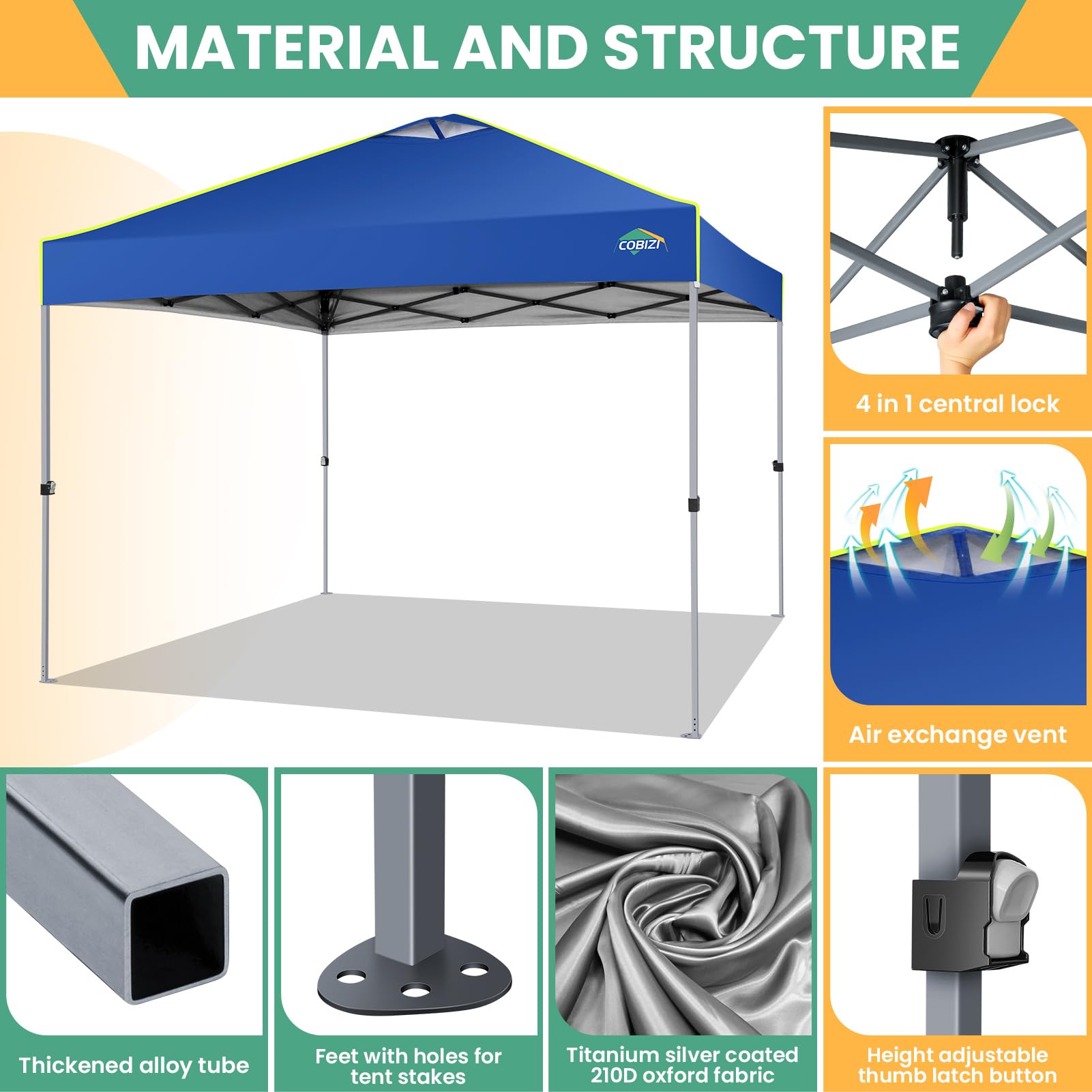 - Easy one-button installation: Cobizi folding gazebo 3 x 6 uses patented one-button central locking technology. One push is enough to lock the rod. The outdoor patio gazebo can be installed by only two people in no time without tools