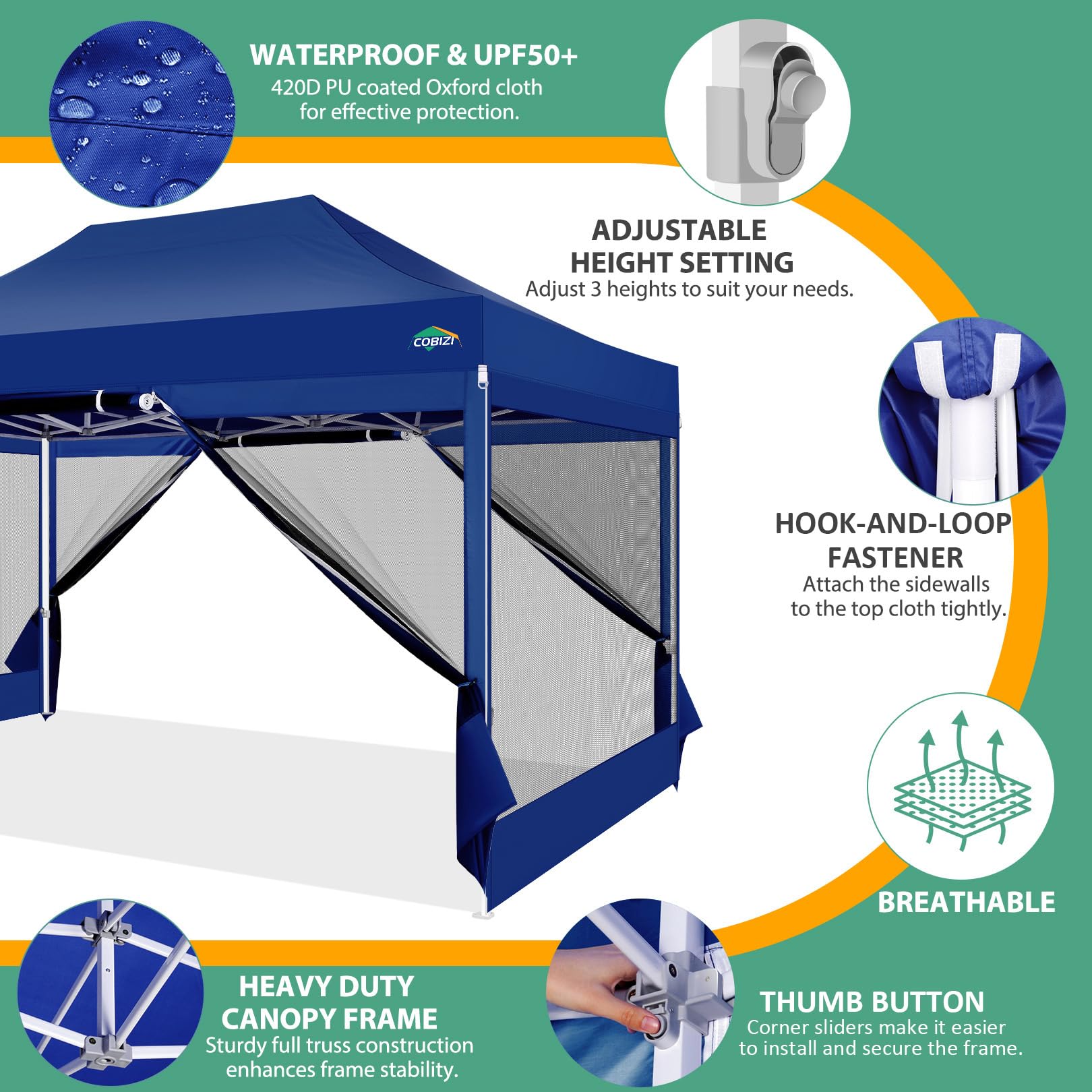 - Sturdy, durable frame: the robust full frame frame increases the load capacity, stability and durability of the cobizi folding gazebo 3 x 3. This 3 x 3 party tent offers 8-10 people an area of 9 square metres and is suitable for a variety of occasions such as hosting parties, patio barbecue parties and exhibition activities.