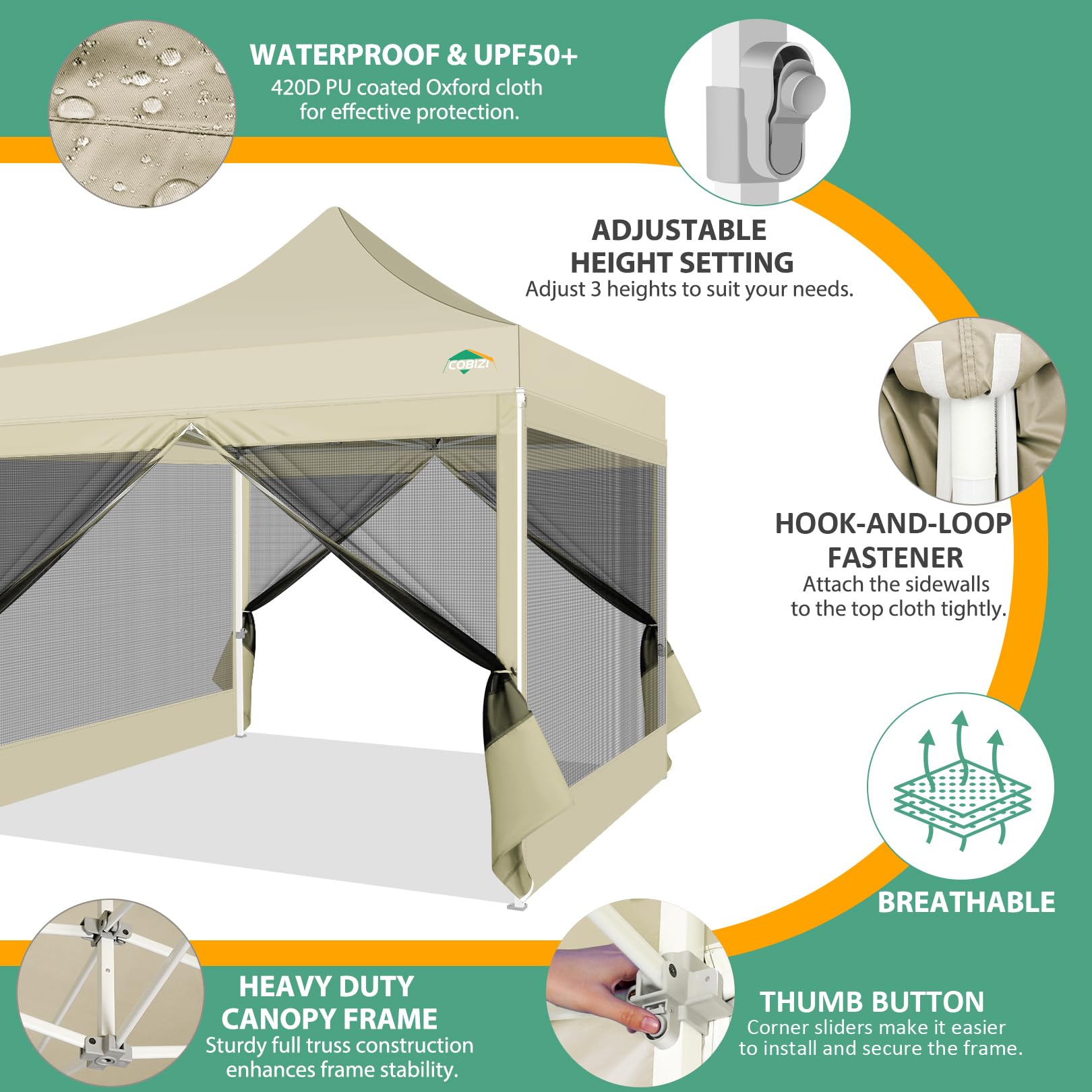 - Easy pop-up folding gazebo: this 3 x 3 folding gazebo is easy and quick to assemble and disassemble, 2-3 people can set up and fold this 3 x 3 pop up gazebo in minutes without tools when not in use, saving your precious time and energy.
