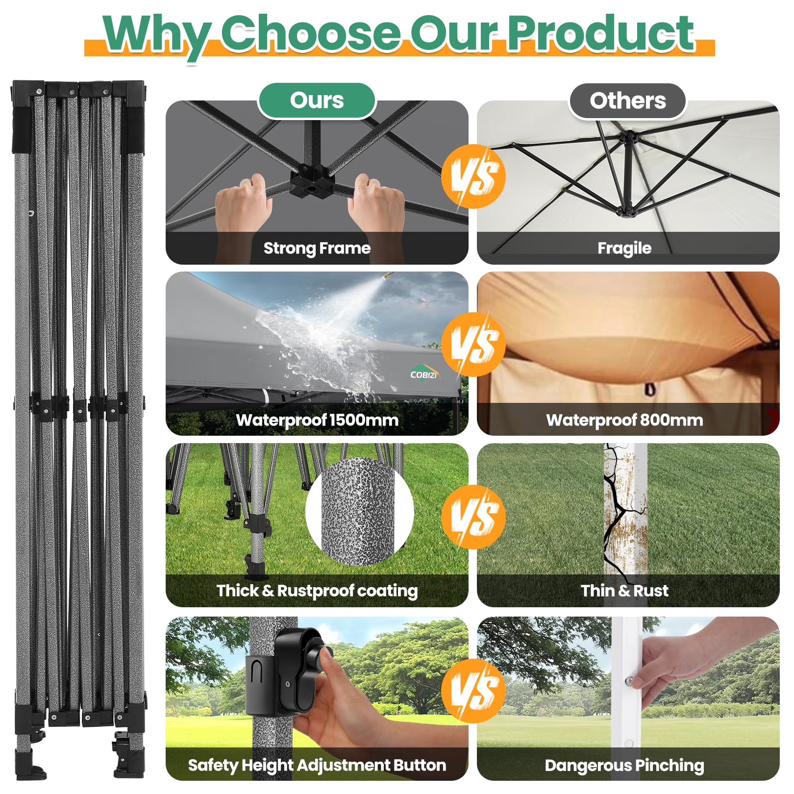 - High-quality fabric and removable side panels: The awning is made of high-strength 420D fabric with two layers of PU coating, 100% waterproof. It has UPF50+ protection to block harmful UV rays. The seams are fully glued to prevent water drops from entering the seams. Three side walls with windows, one door with zip. Velcro fasteners on the side walls keep the folding kiosk closed. Each side panel is removable.